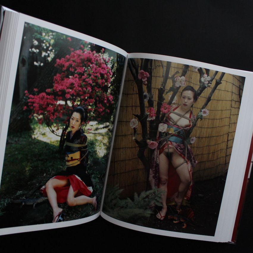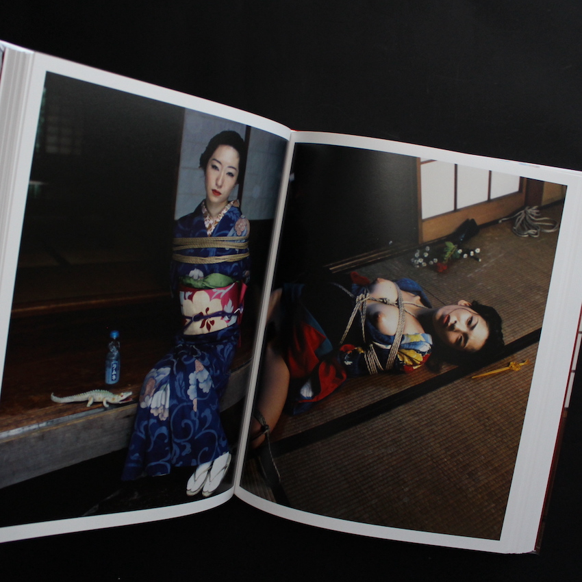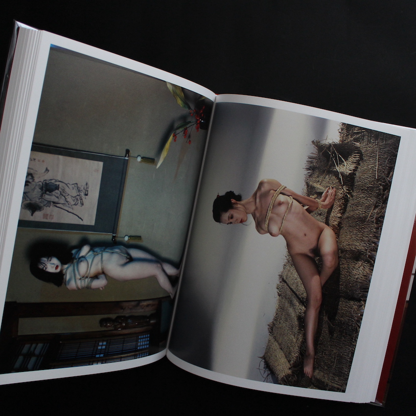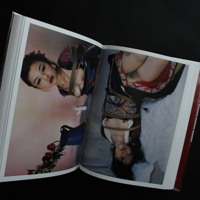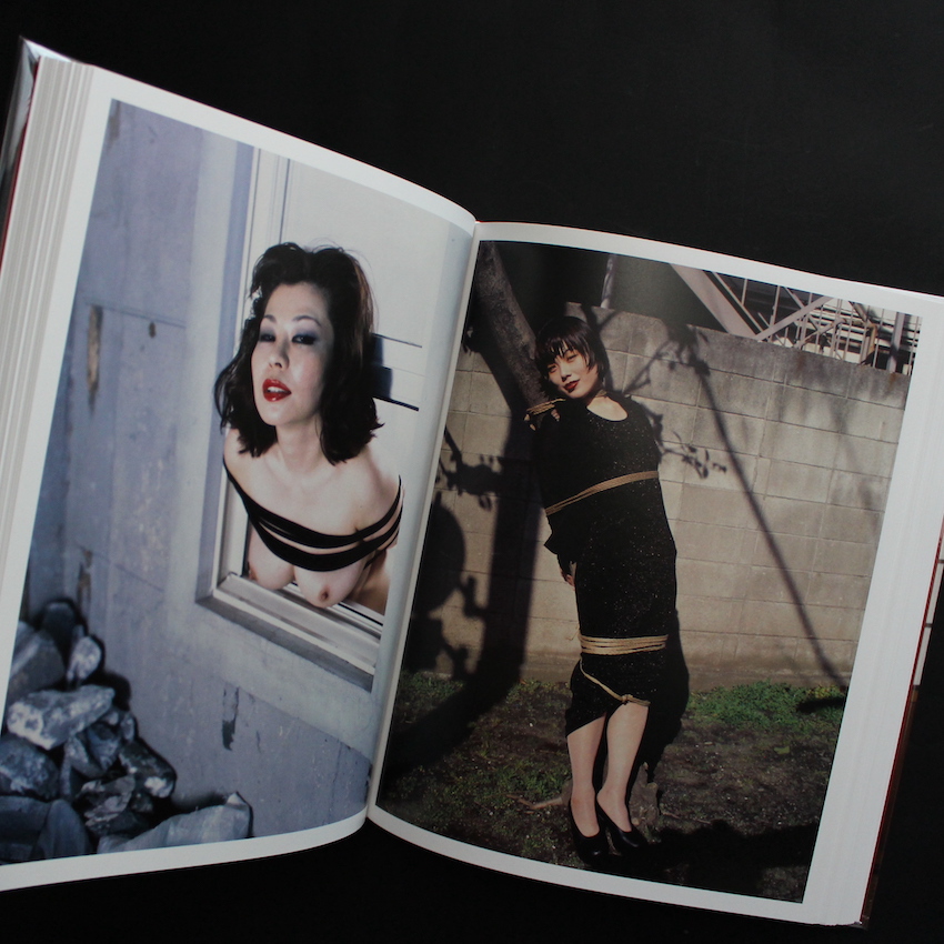 日本を代表する写真家・荒木経惟の作品集『緊縛 / Bondage』。こちらは1979年から近年までの40年以上もの間撮影されてきた緊縛写真をまとめた1冊です。「緊縛は、アタシのメインの私事だね」と自身でも述べていますが、荒木の写真集ではしばしば登場するモチーフともいえます。元々は雑誌『S&Mスナイパー』の連載として始まった企画で、当初は〈緊縛写〉〈ARAKI・SM・物語〉〈昭和写真物語〉〈大光画 超東京百景〉〈クラブ・アラキ〉〈SM♡A〉といったシリーズがありました。緊縛モノのにある儀式的な雰囲気とは異なる情緒を浮かび上がらせるところに荒木らしさが感じられますが、「緊縛にはストーリーがつきものだから、女の子と会って、最初に本人がどんなのを演じたいかって聞く」という荒木の作法が、ドラマ性を生んでいるのかもしれません。荒木が長年意識的に取り組んできたという点でも、ほかのテーマと異なる深化を遂げた作品の数々と言えます。