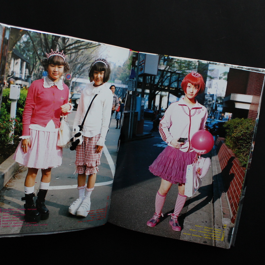 本書は、海外ファッションのストリート情報誌『Street』の創設者青木正一が、90年代に立ち上げた新たな雑誌『FRUiTS』のダイジェスト版として2001年に刊行された写真集。数度の増刷が行われ、20万部以上を売り上げたという人気シリーズです。海外ファッションの魅力を伝えるべく、80年代よりファッショニスタのスナップを紹介し続けた青木は、当時の日本はDCブームでギャルソンやヨウジが圧倒的な人気を誇っていたと語っています。その人気が一段落した90年代半ば頃より、古着などをミックスした個性的なファッションが生まれ始めた原宿のカルチャーを捉えるべく創刊されたのが『FRUiTS』。海外ブランドを着たり、全身ギャルソンやヨウジというある種個性に乏しかった日本から、ようやく生まれた独自のファッションスタイルでした。2008年刊行・Reprint版。『The Photobook: A History Volume III』掲載本。
