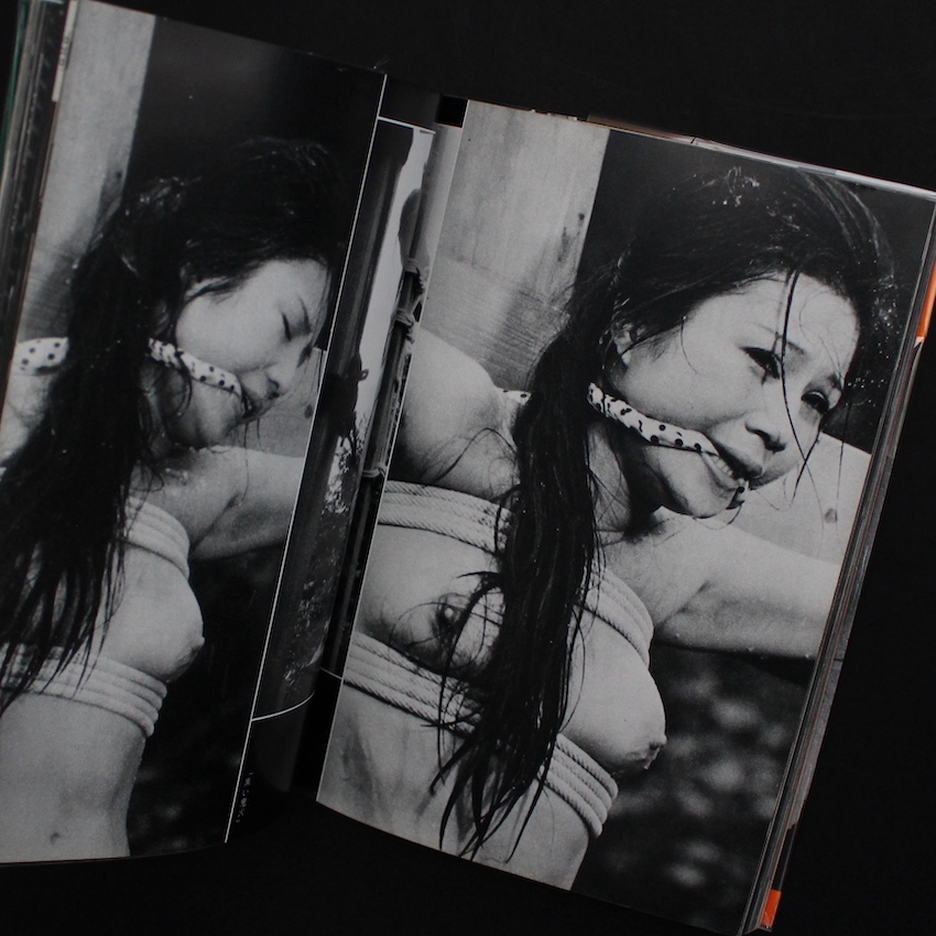本書は「昭和のSM女王」と呼ばれた谷ナオミの思い出の名場面をできる限りピックアップして紹介された作品集『妖繩花 鬼六・ナオミSM写真館 SM写真館』。谷ナオミと言えば、団鬼六の代表作『花と蛇』(1974)で主演を務め、その後も団鬼六が手がけるSM映画に数多く出演しており、初代SM女王とも言われた元祖(ちなみに団鬼六の告別式でも弔辞を読んでいます)。団自体も、自身が描くストーリーの中には、いつも谷が永遠の理想像として思い描かれると認めており、本書も団が自ら写真を選び直し、構成し直しています。「縄と肌」「花と蛇」「夕顔夫人」「黒薔薇夫人」などなどモノクロの名作が連なる見応えのある一冊です。