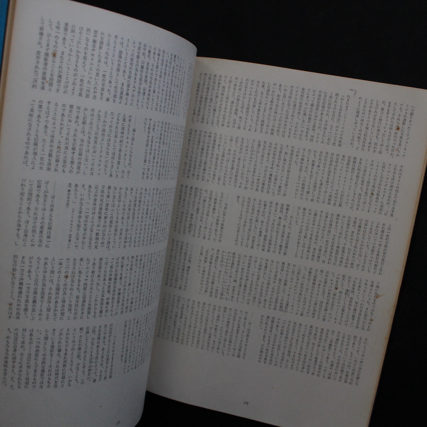 日本を代表する写真家・中平卓馬の作品集『来たるべき言葉のために(初版)』。言わずと知れた戦後日本の写真集のマスターピースの一つ。以下、本文より抜粋「ぼくはかつて、五人の仲間と写真の同人雑誌を発行していた。ぼくたちがめざしたものは、一枚一枚の写真に完結性を求めないこと、また一枚の写真に世界の全貌を予感させるというような、写真にとってはあまりにも荷重な役割を求めないこと、そして、『沈黙』へ向かって断片的な映像をいくつもいくつも積み重ねてゆくことであった。そのとき写真は『作品』であることをやめ、『来たるべき言葉』のために用意された匿名の資料になることができるのではないかという主張であった。だが、それはあまりにも思いあがったことであるのかもしれない。この『沈黙』はついに『言葉』化されることのないものであるかもしれない。(中略)しかし、それならば写真家はついに生まれることのない『言葉』のために、無限の写真を撮りつづけるただの夢想家という名に、あえてわが身をまかせる、そのくらいの覚悟はできていなければならないだろう」。(箱ダメージ、ページ縁角ダメージ、テキストページ若干線引き)
