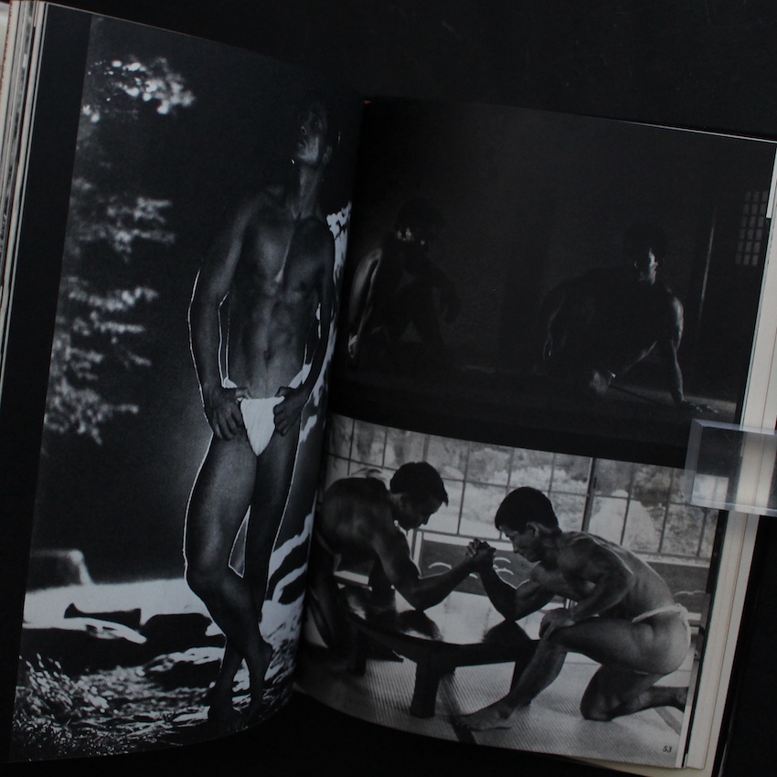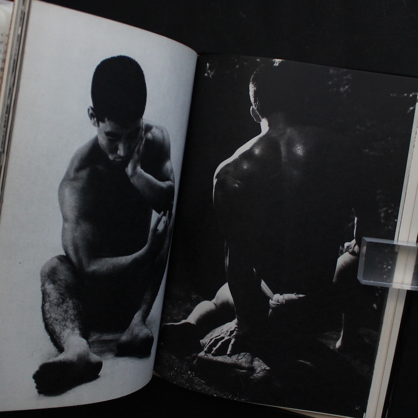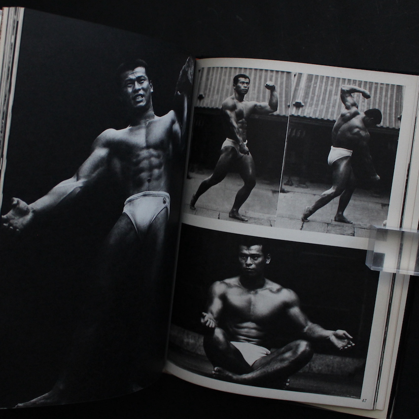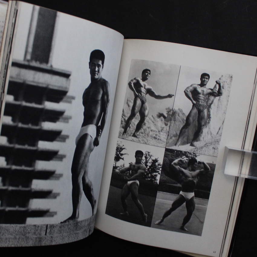 日本の写真家・矢頭保の写真集『体道 日本のボディビルダーたち(First Japanese Edition)』。宝塚歌劇団の男子研究生を経て、日活に所属し、俳優としても活動していたという矢頭保。三島由紀夫を撮影していたことで知られる矢頭ですが、三島とのつながりをもたらしたのが矢頭のパートナーでもあったメレディス・ウィザビーなる人物で、三島の『潮騒』や『仮面の告白』の訳者です。矢頭が写真を始めたきっかけなどは定かではないようですが、経済力豊かで文化的な素養のあったウィザビーの影響があったようです。そしてウィザビーは「ジョン・ウェザーヒル社」を設立し、矢頭の写真集を刊行します。『体動』『裸祭り』『OTOKO』という3冊の写真集を残し、1973年に矢頭は48歳で亡くなっています。本書は、矢頭のファースト写真集の日本語版です。日本のボディビルダーたちを写したもので、序文を記した三島由紀夫の姿も写し出されています。1966年刊行・ハードカバー。(カバーヤブレ・イタミ・裏面補修跡)