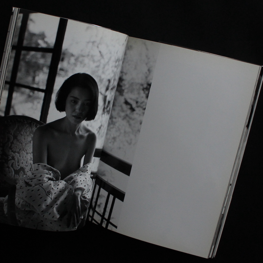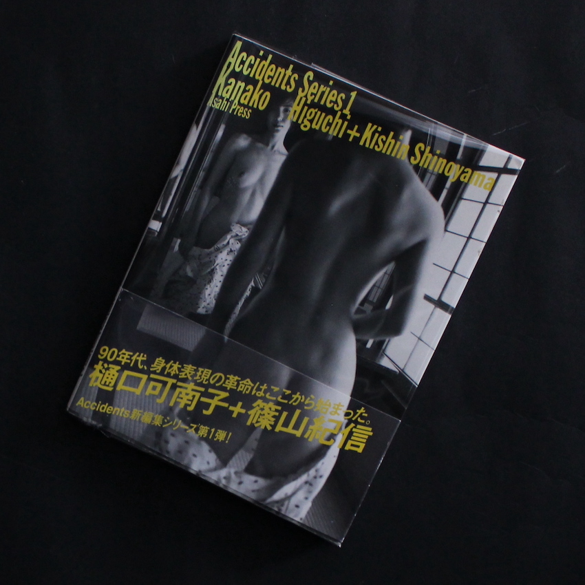日本の写真家・篠山紀信の写真集『樋口可南子 + 篠山紀信 Accidents Series 1』。多くの写真家が、悩めどなかなかなし得ることが難しい「コマーシャル」と「アート」の創作活動の両立。おそらくは戦後日本写真界の中で、もっともその類で成功した写真家の1人と言えるのが篠山紀信でしょう。栗山千明らによるチャイドル写真やグラビア・ヌードが一般的には有名ですが、初期の70年代には『オレレ・オララ』(1971)、『家』(1975)、『晴れた日』(1975)など、アート写真界でも名作と評される作品も多数残しています。本書は、1991年に発行となった女優・樋口可南子の写真集の普及版的なミニサイズの「Accidents Series」の第1号。樋口モデルの写真集は、90年代のヘアヌード・ブームの嚆矢となった1冊で、後に同じく篠山が撮り下ろした宮沢りえの『サンタフェ』へと続きます(いずれもアートディレクションは井上嗣也)。笑顔はほぼなく、物憂げな表情を浮かべ、花々の前でポートレートに収まる冒頭の樋口が、はだけた浴衣で布団に横たわり、コケティッシュな雰囲気に変貌していく様に、樋口の女優としての確かさと、また、エロスと美が交錯するような瞬間を感じます。くわえタバコも決まっています。