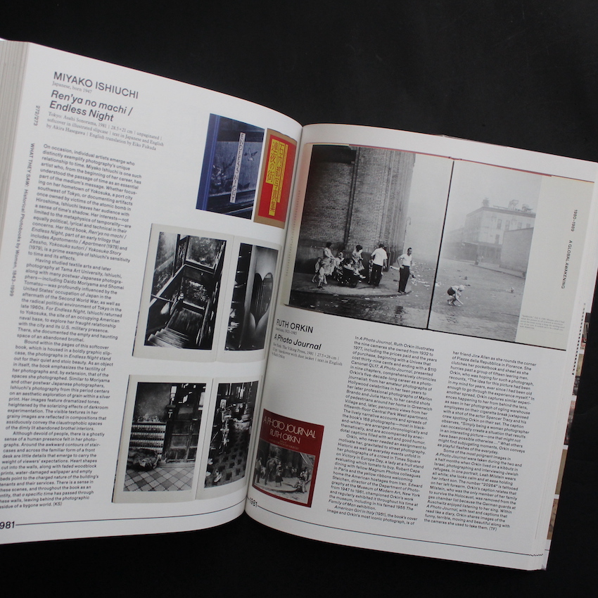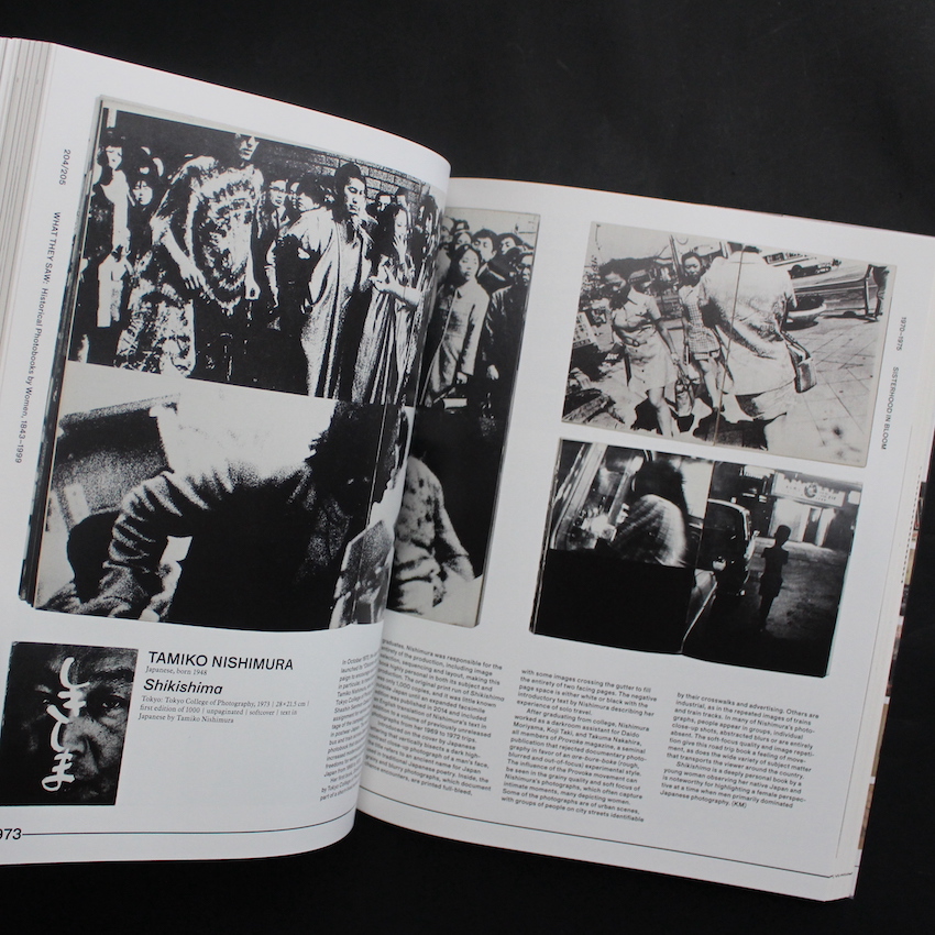 "What They Saw Historical Photobooks by Women" is a collection of works published by 10 x 10 Photobooks, an NGO that works to promote and develop photobooks. Starting with "The Photobook: A History" by photographer and photography historian Martin Parr and "The Book of 101 Books -Seminal Photographic Books of the Twentieth Century-" by Andrew Ross, many books introducing photobooks produced in the 20th century by various countries around the world have been published. In addition to books from the Czech Republic, the Netherlands, Spain, Switzerland, and China, there are also "Japanese Photobooks of the 1960s And '70s" and "The Japanese Photobook 1912-1990" that introduce unique Japanese works. This book focuses on "female photographers" and is the second special feature on female photographers to be published following "How We See Photobooks by Women" published in 2018. It features works from a wider range of ages, continents and content, and also features works from Japan by Tokiwa Toyoko, Yamazawa Eiko, Nishimura Tamiko, Ishiuchi Miyako, Matsumoto Michiko, Ishikawa Mao and Yoshida Ruiko.