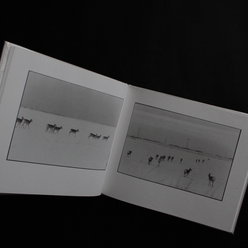 日本の女性写真家・白石ちえこの写真集『鹿渡り / Shikawatari(Second Printing, Signed)』。神奈川県横須賀市生まれ、2000年代より写真家として本格的に活動を行なっている白石は、これまでに尾仲浩二らのギャラリー街道や、冬青社によるギャラリー冬青などでエキシビジョンを開催し、近年はフランス・パリで個展を開催するなど、今後さらなる活躍が期待されるアーティストです。これまでに刊行された作品集は、『サボテンとしっぽ』(2008)、そして2015年に刊行され、2020年には増刷された名作『島影』で、本書がサードブックにあたります(但し、同タイトルの私家版を2019年に100部限定で刊行しています)。舞台は冬の北海道・道東。真っ白な雪景色の中で、群れをなして走るエゾシカ、岬の気流に乗って空を舞うコハクチョウなど。自然と動物と写真家が、一体となって紡ぎ刻んだ叙情的な日常の記録です。2021年刊行・第2刷。