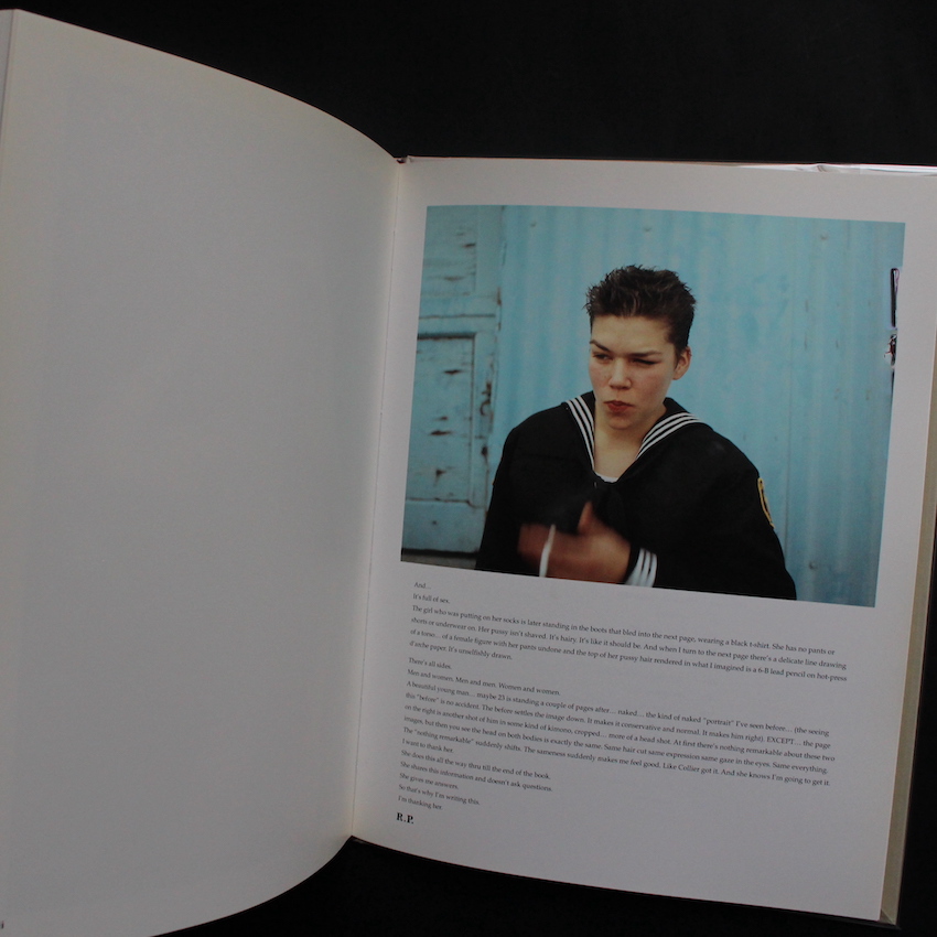 アメリカの女性写真家であるコリエ・ショアの作品集『8 Women』。1963年ニューヨーク生まれ、スクール・オブ・ビジュアル・アーツでジャーナリズムを専攻、90年代は批評家としても活動していましたが、2000年代よりエキシビジョンで作品を発表するようになると瞬く間に注目を集めました。青年たちのポートレートやファッション写真、さらには自身も影響を受けたというアンドリュー・ワイエスらの作品を取り入れつつ再構築を試みるアプロプリエーションの作品も有名で、リチャード・プリンスからも敬意を評されています。現在は名門イェール大学でも教鞭を執っているショアですが、こちらは90年代半ばから現在に至るまでに撮影された、アーティスト、モデル、ミュージシャンなど、パフォーマンスに関わる多様な女性像を収録した一冊。当時から、ファッション雑誌の広告等を流用することで、作家性と欲望という問題を提起し、女性の表現をめぐる議論に女性の視点をもたらしたショアらしいイメージの数々です。