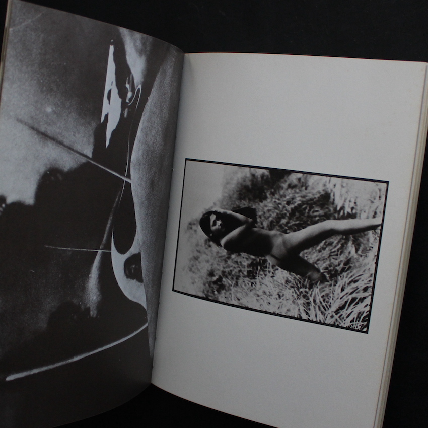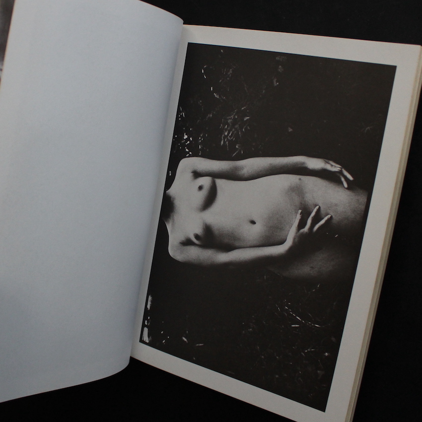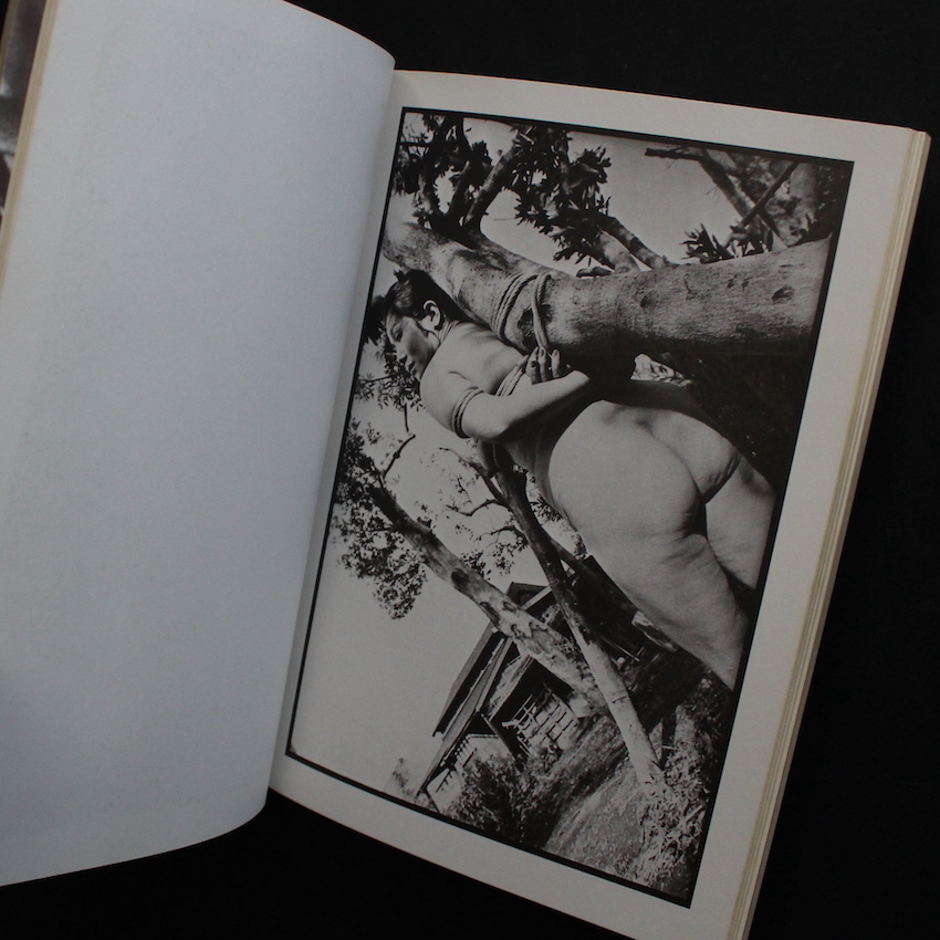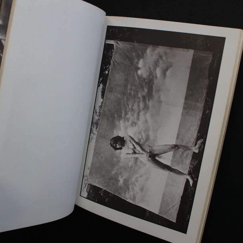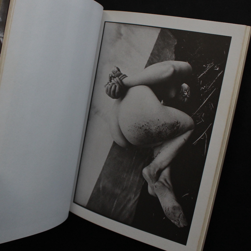 戦後日本を代表する写真家・森山大道の作品集『森山大道ヌード写真集・蜉蝣(With OBI)』。2019年に未発表カットも新たに取り入れられた新装版『蜉蝣 / Mayfly』がAkio Nagasawa Publishingより上梓されましたが、こちらは1972年刊行の初版本です。1972年は、森山大道にとっても重要な一年となり、初期代表作と言われる森山の名著『写真よさようなら / Bye Bye Photography』が4月に、そして『狩人 / Hunter』が6月に発表されており、この蜉蝣も同じく6月刊行、同年の数ヶ月の間に一気に3冊の写真集が生まれました。この蜉蝣は、おそらくは森山にとって唯一?の「ヌード写真集」となっており、緊縛女性をモチーフにしています。当時の「緊縛」と言えば、真っ先に「団鬼六」の名前が上がりますが、こちらも団鬼六の協力を仰いでおり、風景写真は西村多美子が、そしてコンタクトなども交えたユニークなレイアウトは『にっぽん劇場写真帖』と同じく、辰巳四郎が担当しています。帯付。