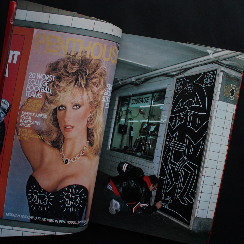 アメリカの画家であるキース・ヘリング(1958-1990)の作品集『地下鉄アート / Art in Transit(OBI)』。80年代のニューヨークのストリート・アートシーンを席巻したものの、バスキアと同じく短命でこの世を去った伝説のアーティスト。エイズによる合併症で31歳と若さで亡くなられているものの、その短い期間で、ニューヨークでの地下鉄の広告掲示板に書かれたイラストは、瞬く間に世間の注目を集め、そのパフォーマンスも含めて「ニュー・ペインティング」と評されました。日本でも、80年代初頭より、BRUTUSでの特集、神宮前・キラー通りで行われた公開ペインティング、コンドマニアとのコラボレーションなど、今なお記憶が蘇るほど、鮮明な印象として私たちの心に宿っています。こちらは、アメリカで刊行された『Art in Transit』の日本語版として刊行された作品集で、ヘリングの作品とパフォーマンスが写真集のごとくまとめられた一冊となっています。帯付。