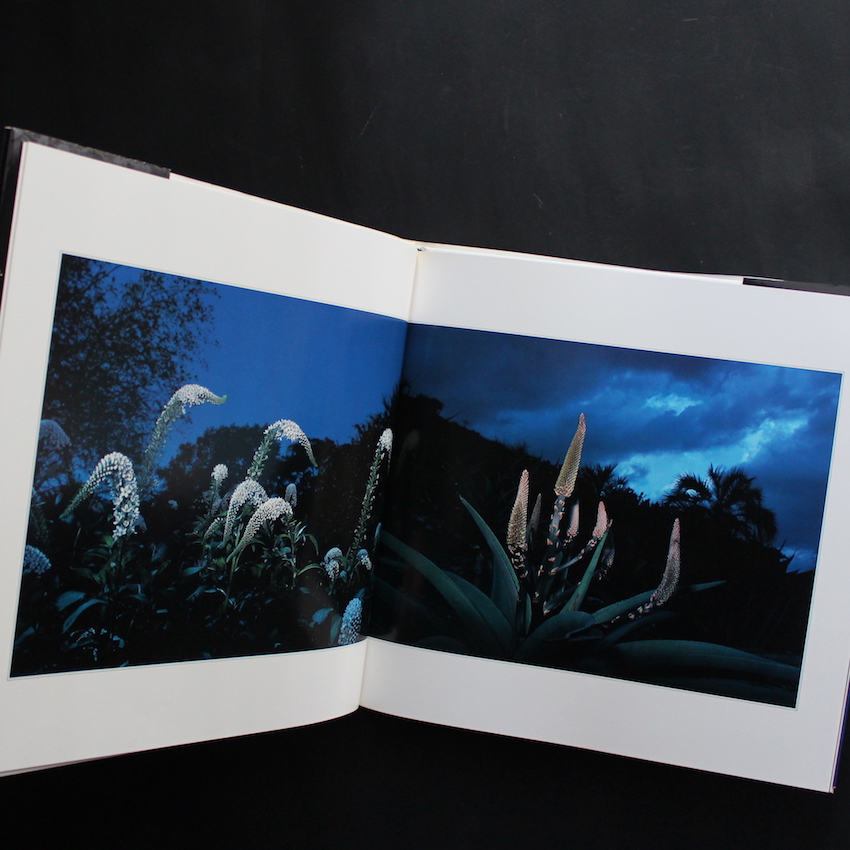 日本の写真家・山村雅昭の写真集。高校在学時から「カメラ毎日」などの月例コンテストに多数入選した経歴をもち、日本大学芸術学部在学時には当時代々木公園にあった在留米軍とその家族が暮らす「ワシントンハイツ」周辺で遊ぶ子供たちを描写した作品を発表、卒業後は「女性自身」の嘱託カメラマンとして活躍します。70年代以降はストロボを効果的に利用した植物写真の創作を行い、1979年にICPでコーネル・キャパ及び山岸章二らによって行われた有名なエキシビジョン「Japan : A Self-Portrait / 自写像 日本」にも著名な写真家らとともに選出されています。本書は1988年に刊行された遺作集。前作とは異なりすべてカラー図版で構成。写真家としての孤独が、植物との向き合いによって昇華されていたかのこどく、妖しく、不気味で、時に殺気を感じさせるほどの植物たち。ストロボ光に照らされた植物たちが空を宇宙空間に変貌させてしまっているような錯覚に落ち入ります。植物の写真表現の新境地を切り開いたとも言える一冊。松岡正剛、奈良原一高、十文字美信、森永純ら錚々たる面々のテキスト収録。スリップケース欠。