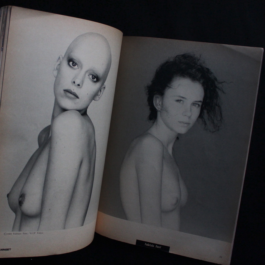 本書は、1970年代後半より辰巳出版より刊行されていた成人向け雑誌『Target』の1989年7月号で、特集は「スーパー・ヌード・コレクション」。BrutusやStudio Voiceなどでも同時代に同内容の特集雑誌が組まれていますが、本書では、Gérard Petremand、Manfredi Bellati、Jean Meziere、Irina Ionesco、Fabrizio Ferri、Jean-François Bauret、Lionel Fourneaux、Javier Vallhonrat、Joe Gantz、Bettina Rheims、James Wedge、Karin Szekessy、Gian Perino、 Luciano Tomasin、Clinio G. Biavatiの作品が収録されており、カラーありモノクロあり、ストレートありアヴァンギャルドありと見応えのあるイメージの数々です。