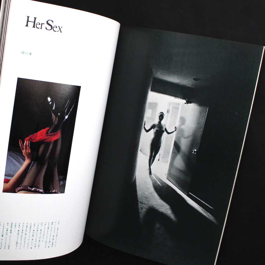 本書は、2008年に休刊するまで29年という長い歴史を持つ雑誌であった『S&Mスナイパー』の別冊として1981年に刊行された写真集『原色の女 ドキュメント大谷英子』。『SMセレクト』『SMファン』『S&Mコレクター』『SMキング』など、70年代のSM雑誌ブームの後発で刊行されたものですが、従来の土着的なモノクロ感満載のイメージから、スタイリッシュで、新感覚なイメージを打ち出そうと出版されたS&Mスナイパー。荒木経惟も長らく連載していた雑誌としても有名ですが、こちらはホステスやビニ本で活躍した大谷英子という女性にフォーカスした一冊。結婚⇒出産⇒離婚⇒同棲⇒離別⇨同棲⇒離別、と波瀾万丈な人生を歩んできた女性の性にフォーカスしたイメージがメインで、ユニークなレイアウトや粗いモノクロが魅力的な一冊です。
