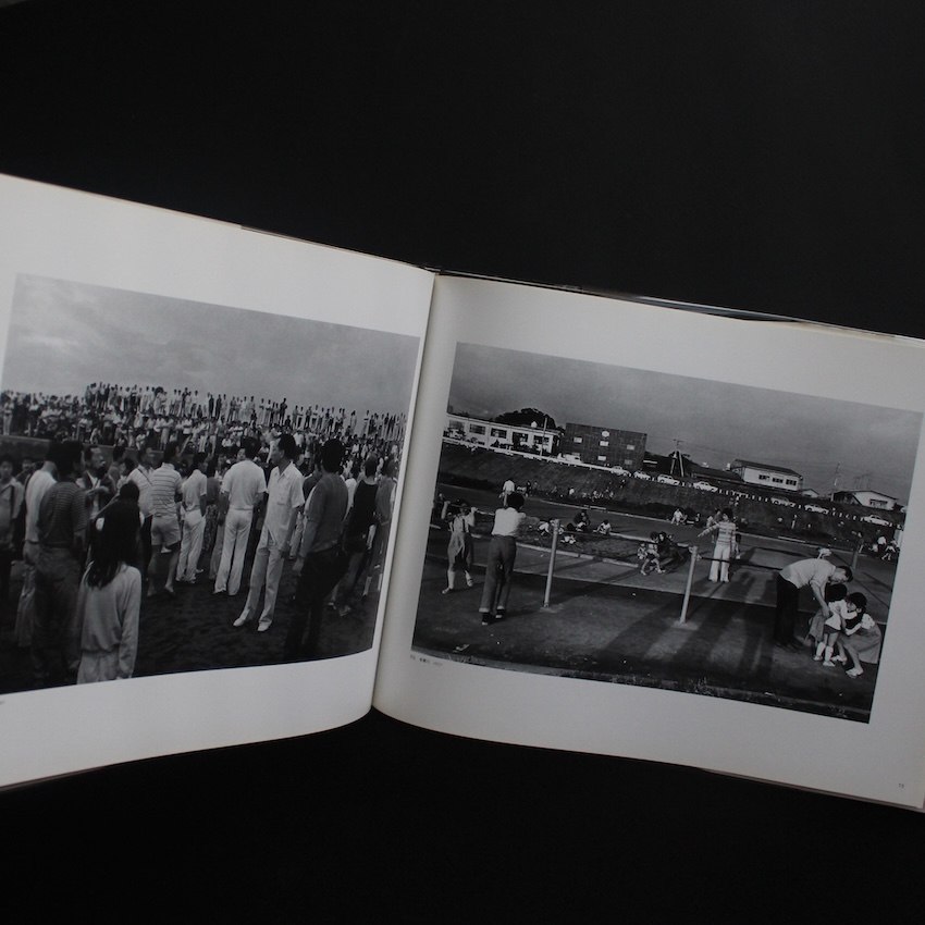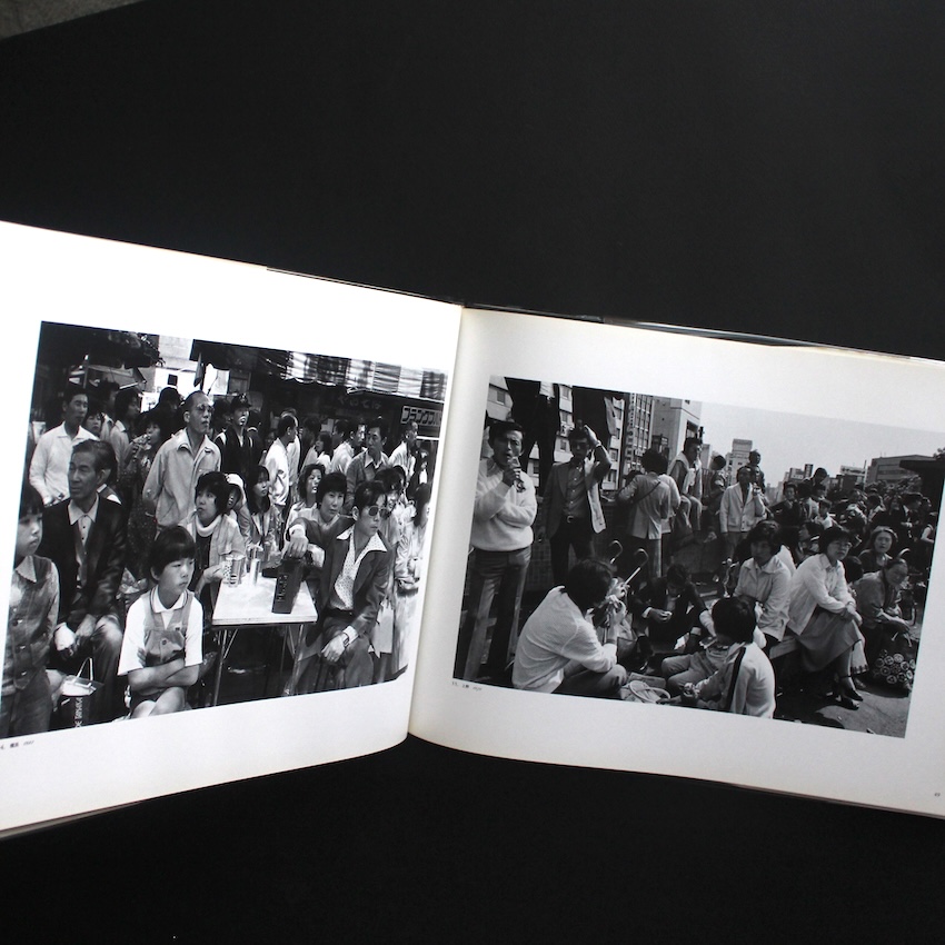 日本の写真家・土田ヒロミの作品集『砂を数える / Counting Grains of Sand 1976-1989』。1944年福井県に生まれた土田は、早稲田大学卒業後に写真家として活動を開始し、70年代の『ヒロシマ』や『俗神』など、社会的テーマに根ざした作品で注目されました。社会や歴史、そして風土との関係を冷静かつ深く見つめる視座を持ち、現代日本写真の中核的存在として高く評価されています。本書は、タイトルの「砂」は単なる自然物ではなく、人や群集のメタファーとして扱われています。街に佇む人々や群れ、広場に集まる群集、無名の存在として流動する人間の姿を、まるで無数の砂粒のように捉えた視線が貫かれています。個が集まり群となり、やがて再びバラバラになる――その儚さや不確かさを、静かで均質なトーンの中に描き出しています。社会における個人の匿名性や、時代に埋もれていく存在の在りようを問いかけるような構成は、ドキュメンタリーでありながら詩的でもあり、土田の写真哲学が凝縮された一冊となっています。