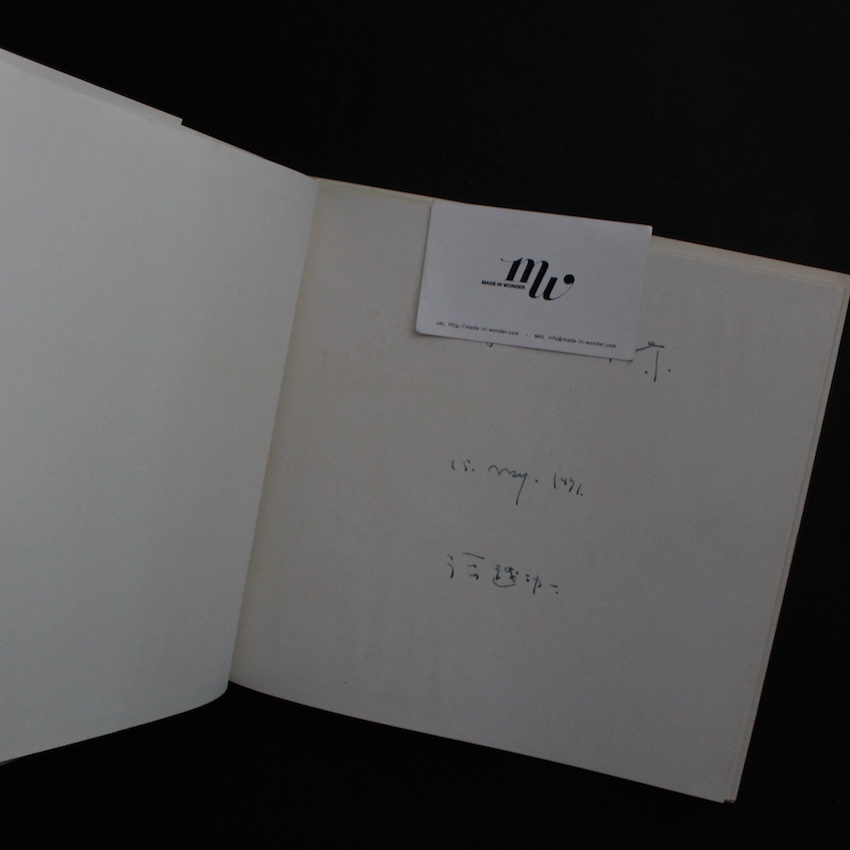 日本を代表する写真家・稲越功一の写真集『Maybe, maybe(Signed)』。モス・アドバタイジング株式会社でグラフィック・デザイナーとして働いた後に写真家に転向、70年代初頭よりフリーランスとなってフォトグラファーのキャリアをスタートさせた稲越功一。これまでに著名なアーティストのコマーシャル・フォトやポートレートでその名を馳せた一方で、海や花などを題材としたランドスケープ等を発表、また世界各国を飛び回りヨーロッパやアジア、中国等の作品集も刊行しています。さらには、俳句や文筆にも精通しており、多彩なフィールドで活躍した写真家です。本書は1971年に刊行された1st写真集。ニューヨーク・マンハッタンを舞台に撮影されたモノクロ・スナップで構成されています。特定のテーマを設けず、「私的なまなざし」で捉えられた作品群は、リー・フリードランダーらに代表される「社会的風景」、及び当時の写真の潮流が感じられ、写真家の卓越したセンスとカメラアイに脱帽の一冊。(著名デザイナー宛)謹呈署名入り。(The Japanese Photobook 1912–1990 収録)