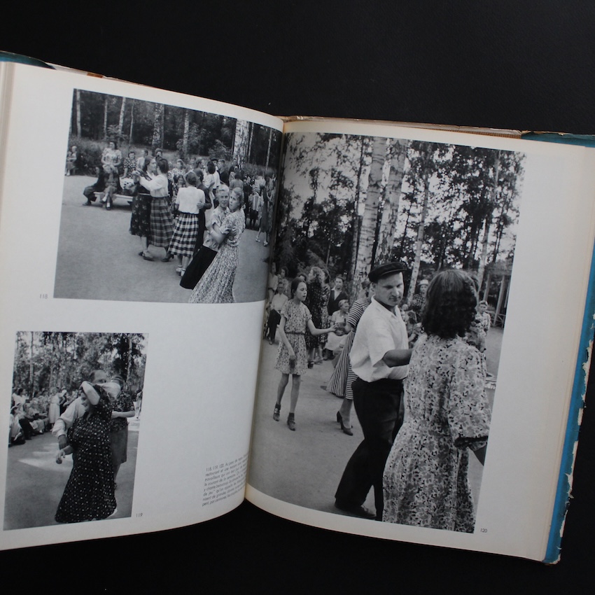 フランスの写真家アンリ・カルティエ=ブレッソン(Henri Cartier-Bresson, 1908–2004)の写真集『Moscou』。同年に英語版『The People of Moscow』ととして刊行されたフランス語版です。ちなみにフランス語版は、名編集者ロベール・デルピールが主宰するÉditions Neufから出版され、戦後写真出版における大きな足跡を残しました。収録された163点のモノクロ写真は、冷戦下の緊張感漂うソ連を舞台に、市井の人々の暮らしや街の光景を「決定的瞬間」として切り取っています。労働者や子どもたち、広場に集う市民の日常を、プロパガンダを超えて普遍的な人間の営みとして描き出し、都市の息遣いと人間的な温かみを伝えています。フランス語版『Moscou』は、デルピールの洗練された編集とレイアウトによって写真集というメディアの芸術性を高め、カルティエ=ブレッソンの名をさらに国際的に確立させる役割を果たしました。本書は、写真家と編集者双方の視点が融合した歴史的名著です。(カバー裏面補修大、及び記名あり)