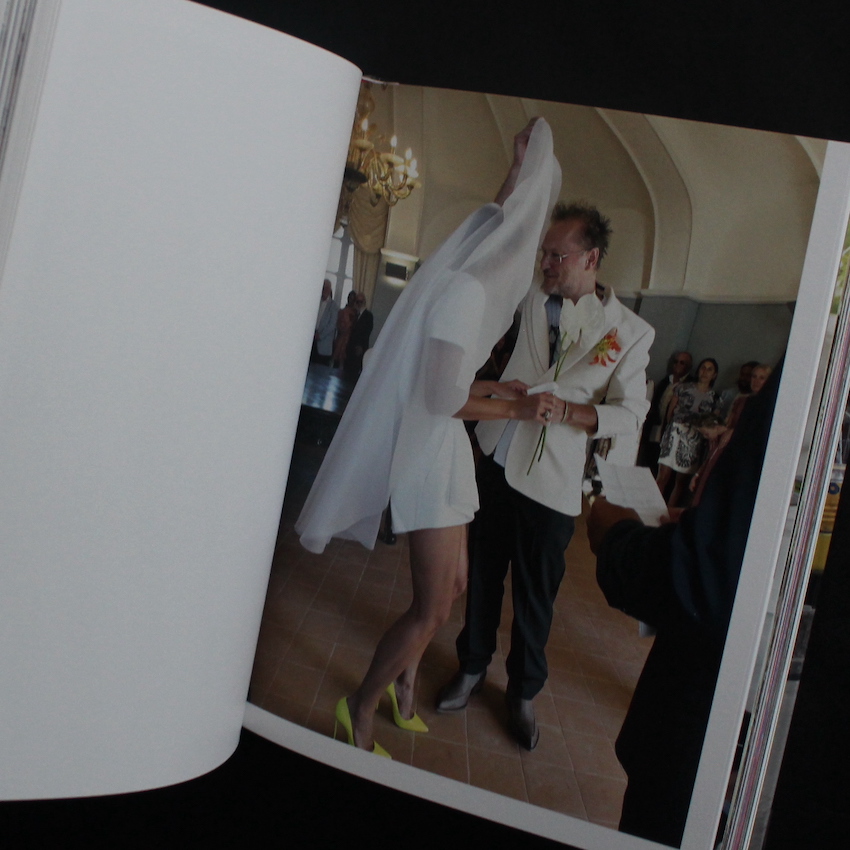 現代写真界を代表するフォトグラファー、ユルゲン・テラーの作品集『The Tellers: Auguri(Signed)』。マーク・ジェイコブス、ルイ・ヴィトン、ロエベ、サンローランなどなど、錚々たるメゾンのイメージ・ヴィジュアルを数多く手掛けてきたファッション写真界の巨匠であるとともに、リスペクトする荒木経惟を彷彿とさせるユーモア溢れる私写真も魅力的なテラー。こちらは、かつての荒木経惟と妻・陽子を想起させるような、テラーと妻のドヴィルの、挙式からフォーマルディナーまで、両名の結婚式の冒険をありのままに記録したビジュアルダイアリー。「私たちは未来を一緒に築いていきます」と書かれた招待状の写真は、両名がヘルメットと作業着をまとって、建設現場でポーズを取っています。ナポリで行われたというディナーから挙式、さらにはナイトパーティーの様子などが収録されており、両名なりのユニークなもてなしも感じられる面白い一冊です。写真家サイン入り。