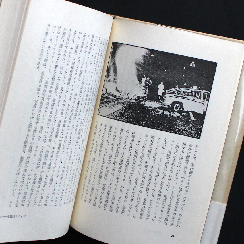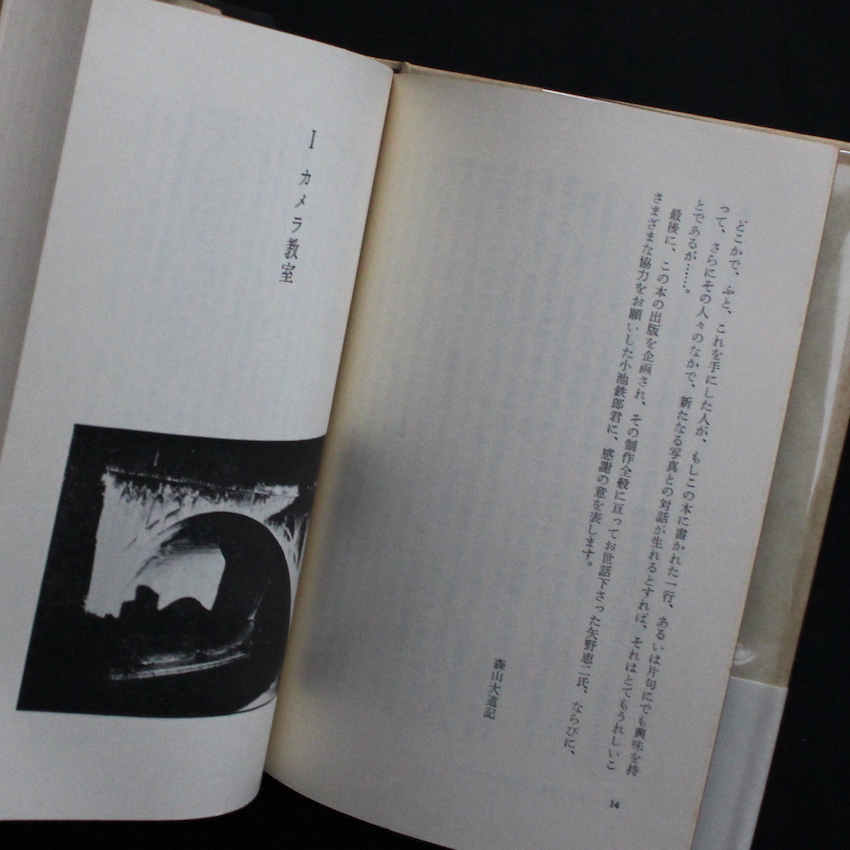 日本の写真家・森山大道の作品集『写真との対話』。本書は、1995年にも改訂新版が刊行された作品集で、カメラを介して森山が世界に語りかけてきた「言葉」をまとめたもので、『アサヒカメラ』『カメラ毎日』などで掲載されたテキストをまとめた内容が収録されています。「1. カメラ教室 (1)主観的スナップ、(2)記録から記憶へ、(3)私のドキュメンタリー写真、(4)一台のカメラから」。「2. 作品解説 (1)アクシデント、(2)何かへの旅」。「3. アングル'81 - '82 (1)アングル'81 - '82」。「4. 表紙後口上/〈光〉考/光の伝記 (1)表紙後口上、(2)断片〈光〉考、(3)光の伝記」。「5. 写真家たちについて (1)東松照明 人とその作品、(2)倉田精二讃江、(3)石内都を語る、(4)おもしろきこともなき世を、(5)恋人よ我に帰れ」。「6. 雑記帳(1)撮る決意、(2)転換を迫られる写真、(3)夢二写真に見る’’歴史としての風景’’、(4)写真としての記憶、(5)レンズを何を燃やすのか、(6)あのこだわりつづけてきたクラインにとうとう逢った、(7)ニエプスへの追走」。帯欠。