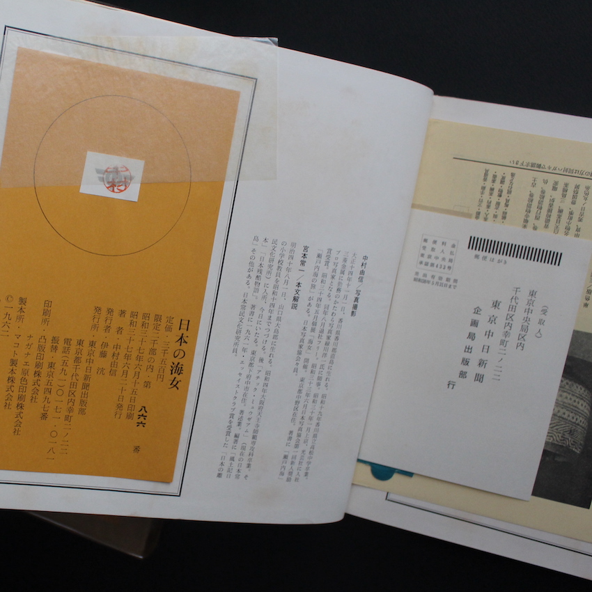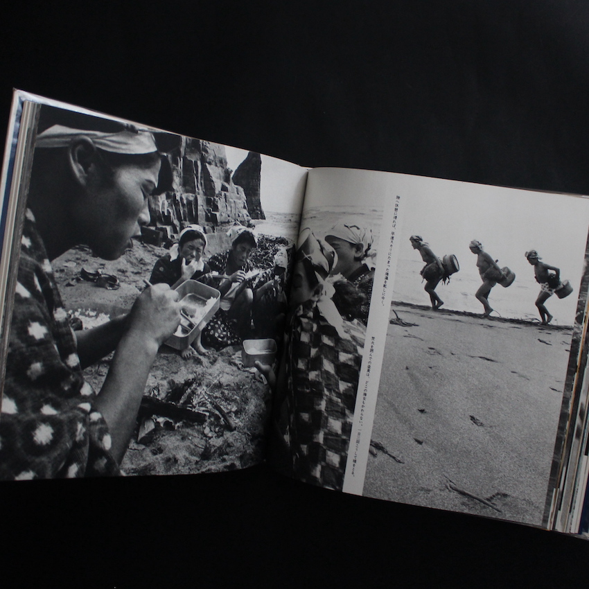 日本の写真家・中村由信の写真集『日本の海女 / The Woman Sea Divers in Japan』。1925年香川県直島に生まれ、父は直島で最後の網元のひとり。幼少時から瀬戸内海を見て育ち、三菱精錬所に就職してからもアマチュア写真を続け、瀬戸内海を代表する写真家である緑川洋一に師事。30歳を過ぎてからはプロのカメラマンとなって『瀬戸内海』を始め『瀬戸うちの人々』など当地の風土・文化を写真を通して描写しつつ、『汽車・蒸気機関車』『海女』など薄れゆく日本の民俗を伝える意義深い作品を残してきた中村由信。本書は中村の代表作で、『海女』を写し出した一冊。ウェット・スーツの登場などで今や見ることもなくなった「海女」。ふんどし一丁で、海底に勇敢に立ち向かう姿は、たくましくそして優美。日本の海女文化を網羅するのみならず、民俗学的見地からも貴重な記録集であります。解説・宮本常一。2000部限定。(見開き折れあり)