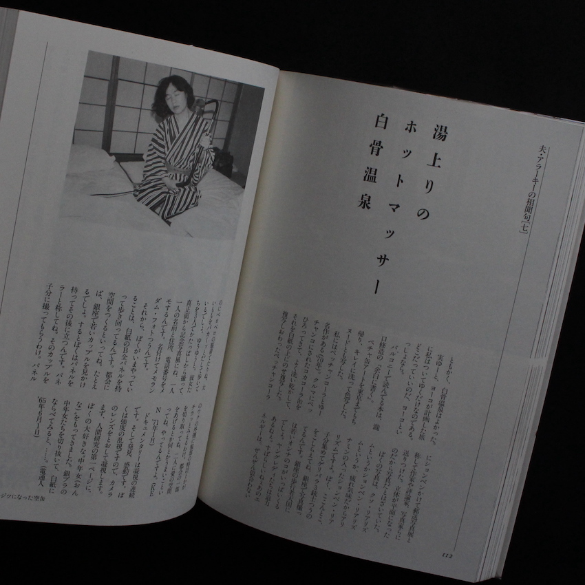 本書は、戦後日本を代表する写真家である荒木経惟とその妻陽子との共著である『愛情旅行』。荒木ファンは周知の通り、妻・陽子は、42歳という若さで90年に亡くなっていますが、文筆家としても知られており、本作でも荒木と陽子の両名が筆を取っていますが、陽子によるエッセイが多めです。こちらは90年代に文庫本としても復刻されていますが、初版は89年で陽子生前の作品となっており、80年代に両名が旅した「夫婦旅行」の一連を、写真も交えてまとめられています。「80年代は荒木の時代だった」と東松照明に言わしめたほど、荒木は雑誌『写真時代』でフィーバーを作り、大忙しの日々。その合間をぬって、1年に数回国内旅行を楽しんでおり、かつては「東の蓬莱」「西の俵屋」と言われたほどの名旅館であった、熱海の蓬莱(現在の界 熱海)などにも2度ほど訪れています。夫婦の幸せの詰まった名著です。