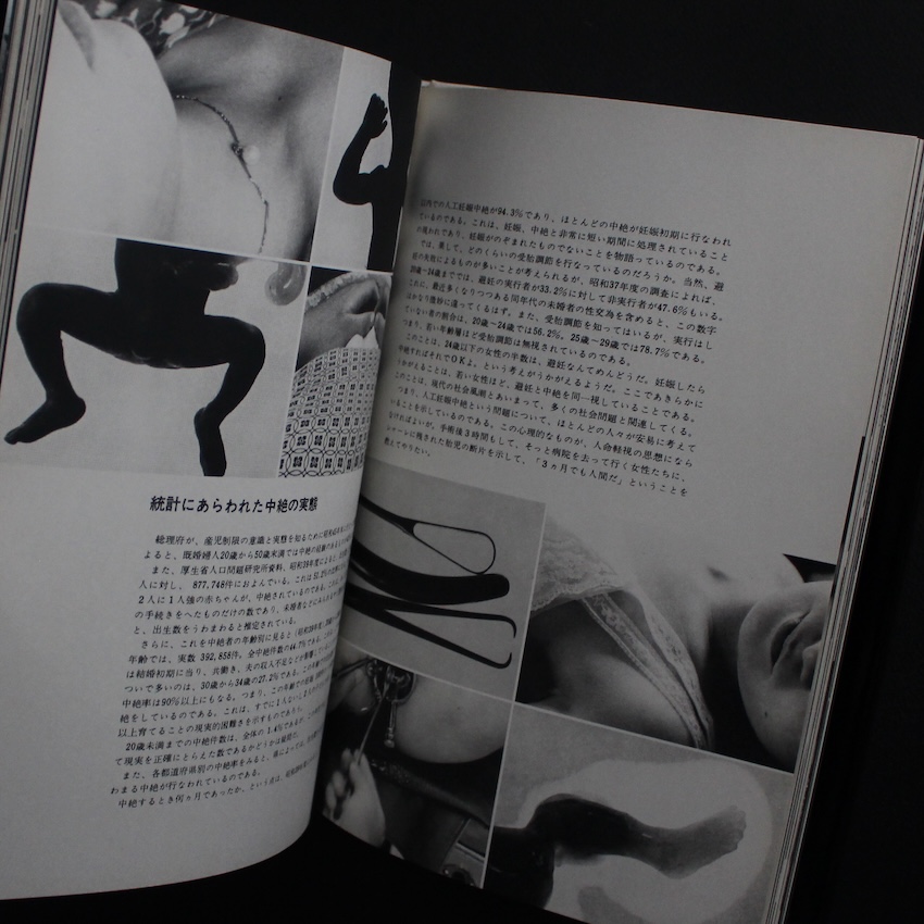 日本を代表する写真家・剣持加津夫の写真集『小さな生命 フォート・ドキュメント その死と生と』。VIVO、PROVOKE、CAMPなどの出身者を中心とした世界的に高い人気を誇る1960〜70年代の日本の写真界の中で、この異質な男の存在も忘れてはなりません。剣持加津夫。戦争敗戦を機に米兵らによって蔓延した「麻薬渦」に待ったをかけるべく「麻薬追放キャンペーン」と称して、40年以上もの間厚生省や警察庁と連動してルポルタージュを発表し続けた写真家です。さらには、麻薬の捜査上の機密や人権侵害を回避するため、撮り方の工夫やメカニズムの利用により写真表現の抽象化を習得し、その技術を駆使して「性」や「エロス」の芸術的表現にも独自の世界感を見出だし、ジャーナリストのみならずアーティストとしても活躍した稀有な写真家です。本書は、人工中絶に待ったをかけるべく、あまり知られていない胎児のイメージをメインに構成された一冊。大人たちの都合で、次々に失われていく胎児。すでに意思を持って生き始めている彼らの図版を通して「生」と「死」についての認識を新たにしてほしいと願った剣持の意欲作です。