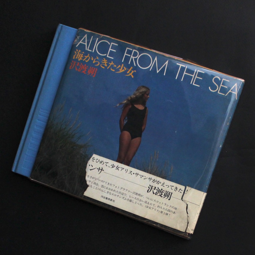 日本を代表する写真家のひとりである沢渡朔の写真集『海からきた少女 / Alice from the Sea』。日本大学芸術学部写真学科在学中より写真雑誌などで作品発表を始め、横尾忠則らも一時在籍していた日本デザインセンター勤務を経て、1966年よりフリーの写真家として活動。70年代には、ファッション・ストーリーのように無垢な女性の姿を幻想的なイメージで撮り下ろし、不思議の国のアリスを題材にした『少女アリス』や、イタリア人ファッションモデルを撮影した『ナディア』といった写真集が話題を呼びました。本書はその代表作『少女アリス』の続編的一冊で、当時10歳であった少女サマンサの4年後を、スコットランドの海辺やアイルランドで撮り下ろした作品集。前作と同じく谷川俊太郎の詩が添えられ、装丁・レイアウトは堀内誠一によってなされています。(帯カケ・ヤブレ大)