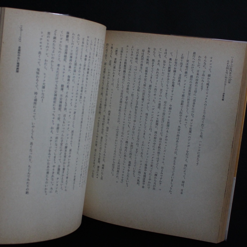 日本の前衛アーティスト、草間彌生による作品集『マンハッタン自殺未遂常習犯』は、草間が絵画やインスタレーション活動とは別軸で、言葉と物語を通じて自己と都市、狂気と希望の交錯を描いたユニークな一冊です。1970年代のニューヨークを舞台に、主人公が繰り返す“自殺未遂”の行為を通して、街のエネルギーと個の内面が照射されていく構造は、草間の「無限の網」や水玉モチーフを彷彿とさせながらも、フィクションと実体験が曖昧に融解する文体で展開されます。作品全体を包むのは、孤独のなかで自己を肯定しようとする強さと、逆説的に”生きること”を問い直す痛切さです。前衛アートの文脈から出発しつつ、小説というフォーマットを通して“都市”や“自己”の根源に迫るこの書は、草間彌生というアーティストの多層的な視点を示す貴重なマイルストーンであり、彼女の表現世界を理解するうえで欠くことのできない作品です。帯付。