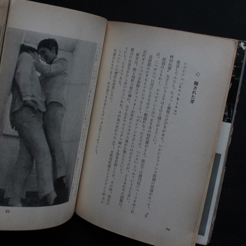 日本の女性写真家である清岡純子(1921-1991)の作品集『女と女 レスビアンの世界』。主に80年代以降に創作された少女作品の数々が、99年施行の児童ポルノに関する法律の対象となり、その作品の多くは現在目にすることはできません。しかし、62年にフリーとなって以降、清岡が一貫して追い求めてきたものが「女性」であり、当初は女性の同性愛に関する作品に精力的に取り組んでいました。こちらは、69年に刊行された作品集で、2年前に東京で暮らすようになって出会ったレズビアンたちのナマの世界を、テキストと写真を交えて記した一冊です。(地にゾッキ印)