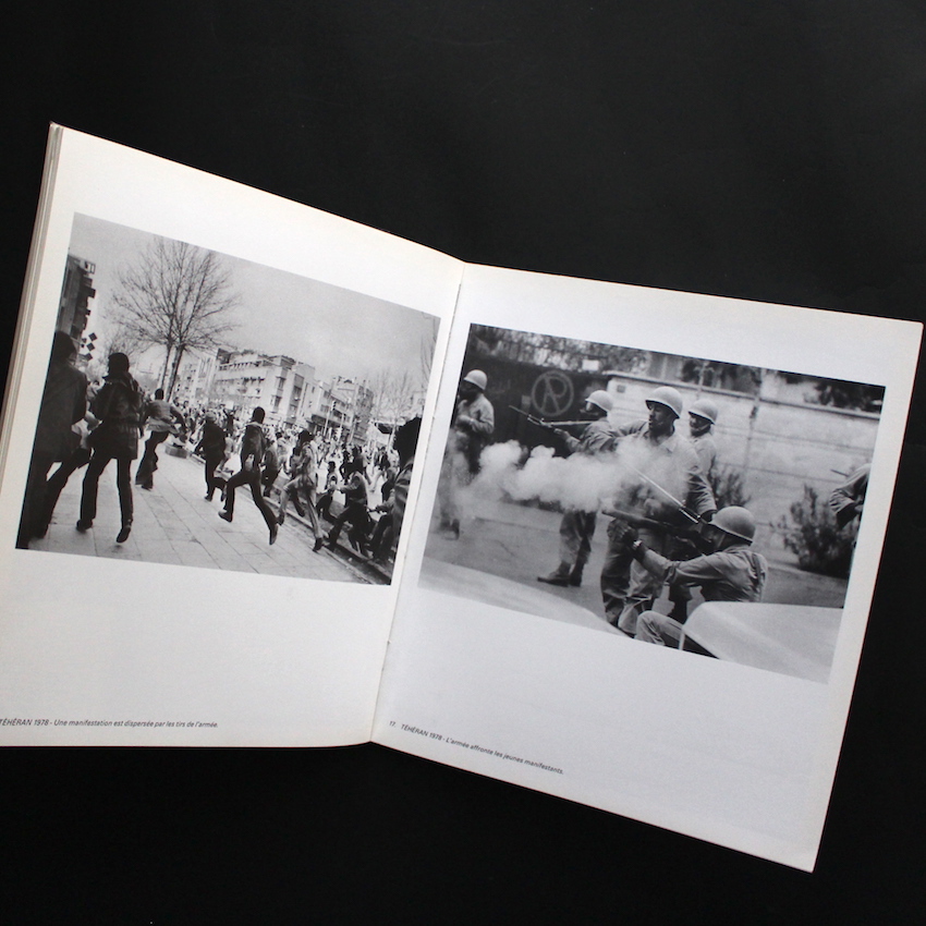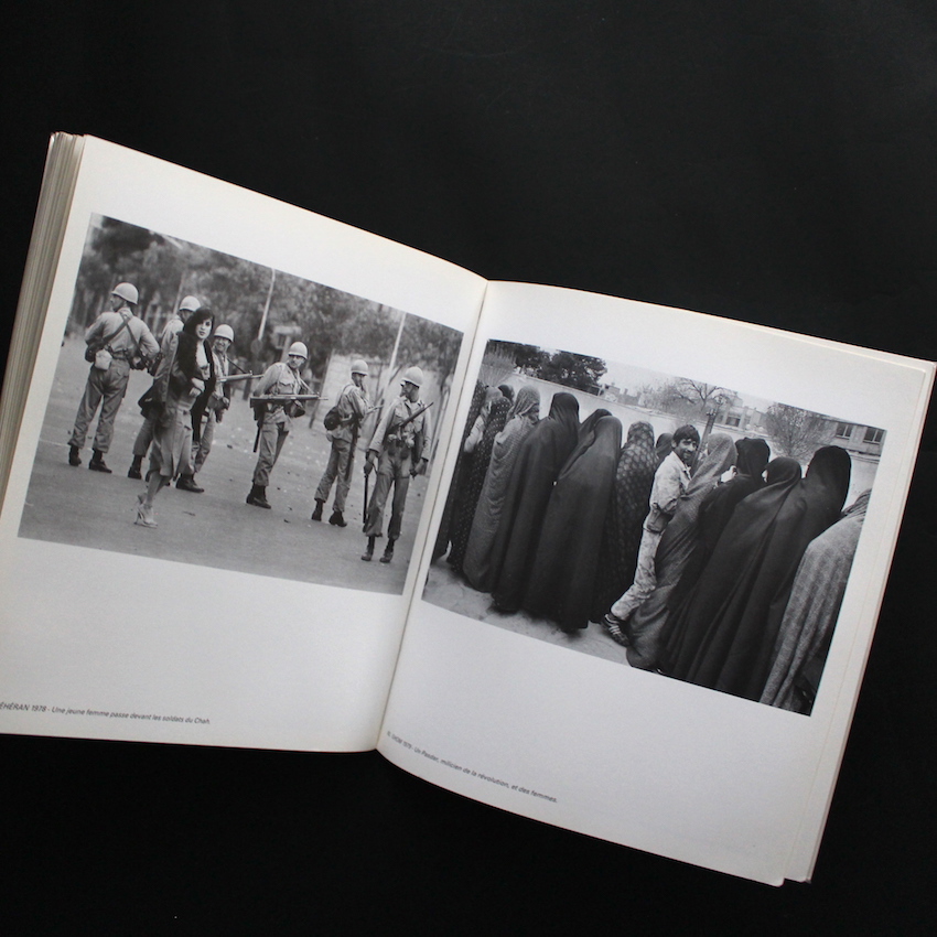 イラン出身の写真家・アルター・アバス(1944 - 2018)の作品集『Iran: la Revolution Confisquee』。通称・アバス。1960年代初頭にナイジェリアでフォト・ジャーナリストとしてのキャリアをスタートして、70年代初頭にはフランスの巨匠レイモンド・ドゥパルドンも所属したGamma、そしてその後は写真通信社・シパプレスと、報道写真家としての地位を築いていき、1981年にはマグナム・フォトのメンバーとなったアバス。これまでに、アフリカ・東南アジア・中南米など計30カ国近くの主に途上国でルポを続け、90年頃よりはイスラム文化の復興やキリスト教徒への取材など、宗教をテーマにしたドキュメントに取り組んでいます。本書は、アバスの代表作で「プロテスト写真集」の名作の一つ。1980年前後のイラン革命の様子を収めた図版が収録されており、女性が、子どもが、老人が、国中の誰もが銃を持つ、危険な環境下で、政府と戦い民衆自らの手で政権を勝ち取った、「イスラム国家」成立までの歴史的戦いが描写されています。