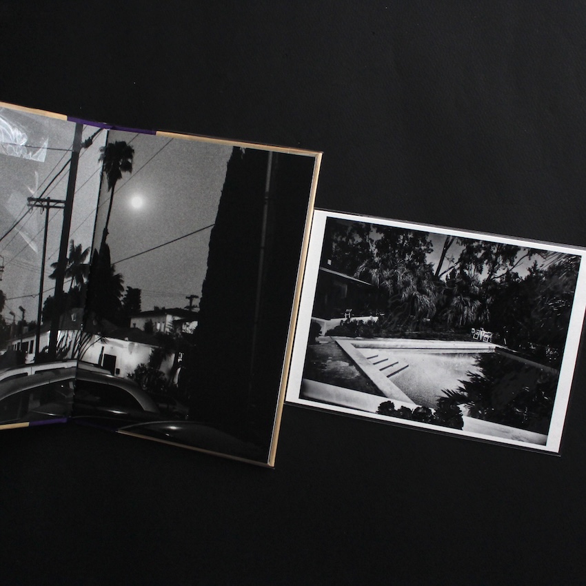 日本の写真家・森山大道による作品集『L.A. UNO One Picture Book Two #38』は、2015年に米国の展覧会参加を機に西海岸へ赴いた森山が、わずか2日間でロサンゼルス西岸・サンタモニカ、ヴェニス、マリーナの路地や民家をモノクロームで撮影し、シリーズとしてまとめられた小型作品集です。シリーズ第38号にあたる本書は、500部限定、サイン入りオリジナルプリント付きというコレクターズ・エディションとなっています。路地の壁、日常の断片、光と影の奔流。森山がこれまで追い求めてきた「都市の身体性」や「見ること・見られること」のあわい」は、東京・新宿の路地から、ロサンゼルスの西海岸という異境へと移行してなお色あせず、粗い粒子、重いコントラスト、瞬間の切断が跡を残します。本書に収められた16ページの中で、森山の視線は〈外部〉と〈私的空間〉の境界を曖昧にし、観る者の記憶と身体感覚にひそやかに触れます。小さな紙面ながら、都市という広がりが凝縮され、見る者の視線が反転する余白をたたえた一冊です。写真家サイン入りプリント付き。