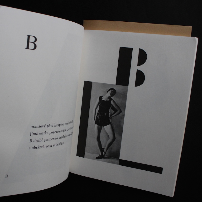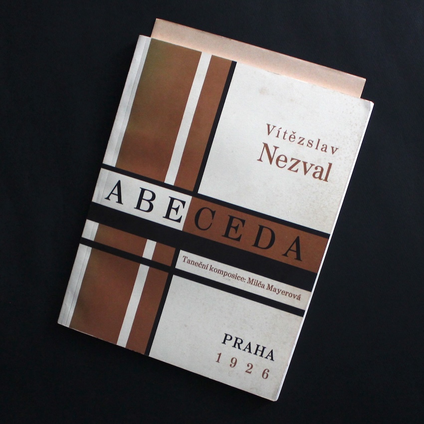 チェコの詩人ヴィーチェスラフ・ネズヴァル(1900-1958)と舞踊家ミルチャ・マイエロヴァ(1901-1986)の作品集『ABECEDA Tanecni Komposice』。本書は1926年に刊行された初版の構成を基点に、文字・写真・舞踊が一体となった当時の前衛的試みを再評価するために後年復刻された重版版で、チェコ・アヴァンギャルドを象徴する造本として知られます。ネズヴァルの詩がアルファベットのリズムを視覚化し、マイエロヴァのポーズを写真で定着させることで、言語と身体が呼応する独自の構造が立ち上がり、20世紀初頭の実験精神が現在の眼差しで読み直されます。復刻版ではオリジナルのタイポグラフィやページ構成が忠実に再現され、初版の革新性を今日に伝える一冊となっています。