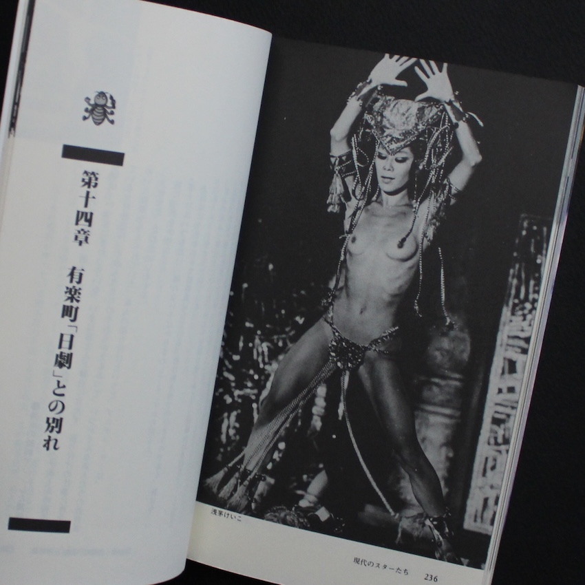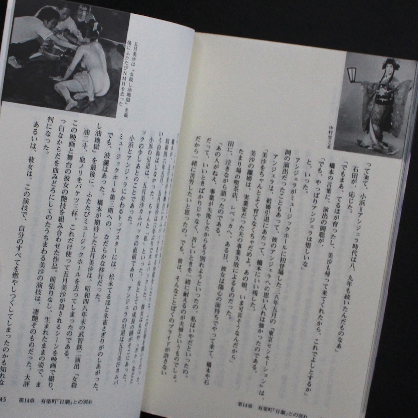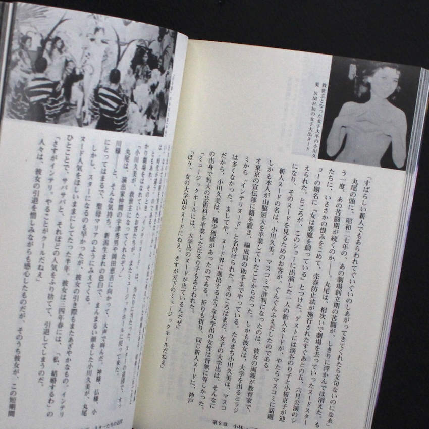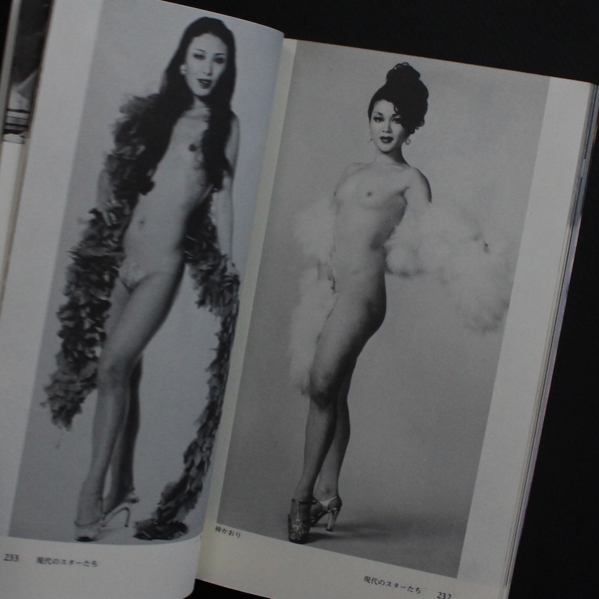 演劇・映画評論家等で活躍した石崎勝久の作品集『裸の女神たち 日劇ミュージックホール物語』。昭和期のナイトカルチャーを記録してきた石崎は、銀座の日劇ミュージックホールを中心に、舞台に立つ女性たちの身体とそこに集う人々の視線を独自の距離感で捉えてきた作家です。華やかさの裏にある労働としての身体、舞台の光に照らされて立ち上がる緊張や孤独といった揺らぎを、過度にdramatizeせず淡々と記す姿勢に特徴があり、当時の歓楽街を内部から見つめる視点が一貫しています。本書では、ストリップ劇場という装置のなかで交差する感情や矛盾を、出演者の語りや現場の風景を交えながら描き、光景の奥に潜む時代の匂いや温度を読者にそっと手渡します。舞台と客席のあいだで生まれる一瞬の表情や沈黙が丁寧に拾われ、単なる夜の記録にとどまらず、昭和の都市文化を映す断片として読み継がれる余白を残す一冊となっています。テキストメインですが、小さな写真図版たちも見応えがあります。