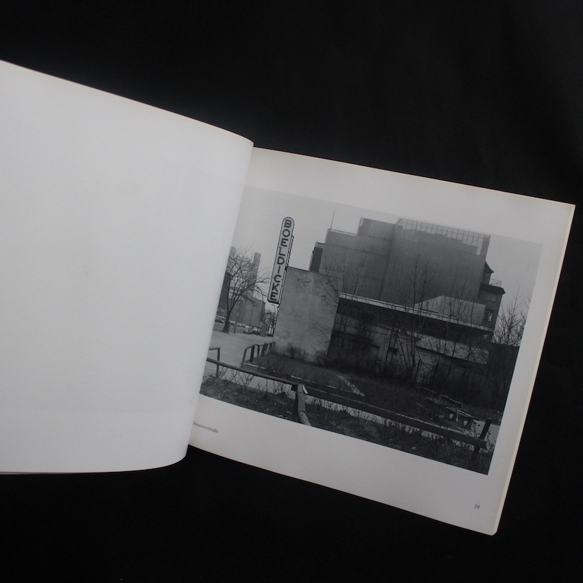 戦後ドイツを代表する写真家、ミヒャエル・シュミットの作品集『Berlin - Wedding(First Edition)』。ベッヒャー夫妻、近年ではアンドレアス・グルスキーらに代表される硬質なランドスケープをベースとしながらも、ウォーカー・エバンスらのドキュメンタリー的な要素も合わせもち、さらにはファウンド・フォトなども交えたコンテンポラリーなスタンスも有する、20世紀を代表するドイツ現代写真のキーマンです。長らくベルリンを拠点にしていることから、複雑な政治・歴史的背景、ベルリンの壁崩壊、アイデンティティー。。これら複合的なモチーフを組み合わせた作風が特徴的です。本書は、1970年代後半に西ベルリンの労働者階級地区「ヴェディング(Wedding)」を記録した作品で構成されており、日常の風景や人々の姿をモノクロームで捉え、都市の変遷や社会の断片を映し出しています。シュミットはこのように言っています。「写真を計り知れないグレーへと押しやり、白黒さえも見えなくするのは、完全に意識的なステップだった。(中略)世界は明確に定義できるものではなく、多様なニュアンスで表現されるものだと私は思った」。1978年刊行・初版。
