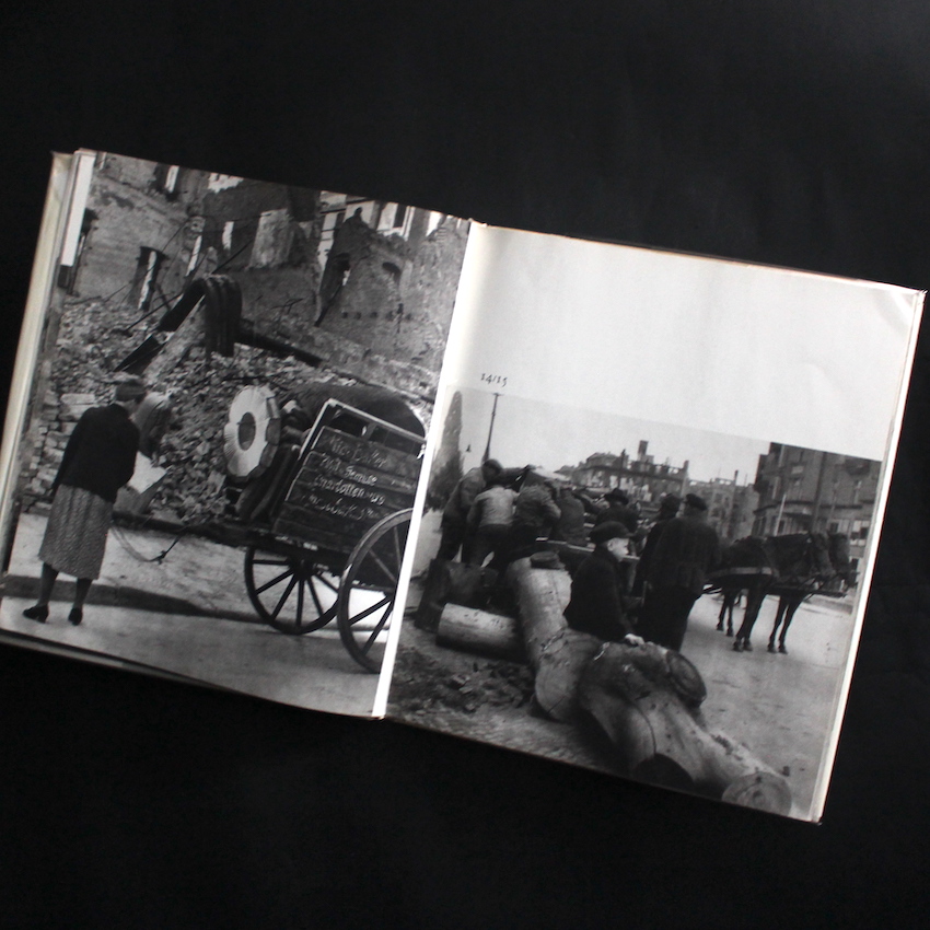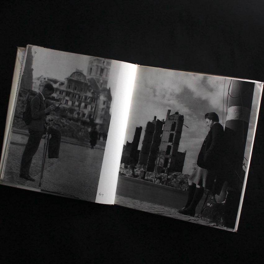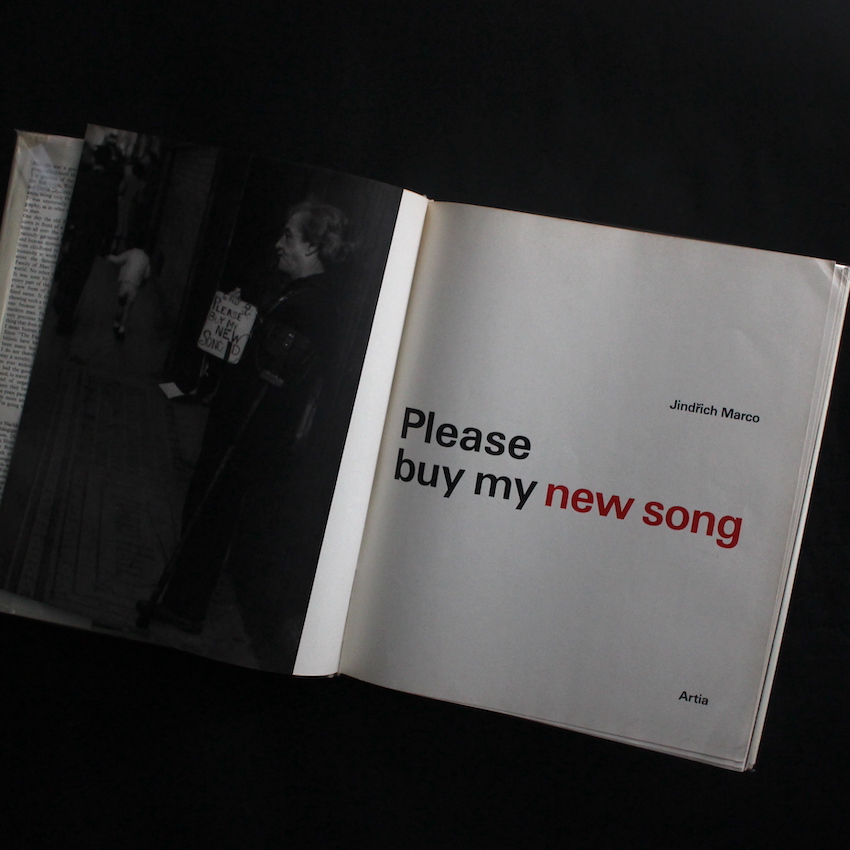 チェコスロヴァキア出身の写真家・美術史家であるジンドリチ・マルコ( 1921–2000)の作品集『Please Buy My New Song』。特に第二次世界大戦後のヨーロッパに焦点を当てたドキュメンタリーで知られるマルコの作品は、報道性と詩情を併せ持ち、歴史の中で忘れられがちな市井の人々の姿に光を当てています。。代表作である本書は、プラハのArtia社から刊行された写真集で、戦後直後のベルリン、ワルシャワ、プラハ、ロンドンなどを巡り、瓦礫の街とそこに生きる人々の営みを記録しています。後半には1948年のイスラエルで撮影された写真が並び、新国家の希望や活気ある暮らしの情景が展開されています。表紙の「私の新しい歌を買ってください」と書かれた札を掲げる男の写真は、再生への願いを象徴する印象的な一枚。時代の境界に立つ人々の「静かな叫び」を、美術史的視野とヒューマニズムのまなざしでとらえた、20世紀の歴史に名を刻む名著。(ジャケット・ダメージ大、及びページ角イタミ)