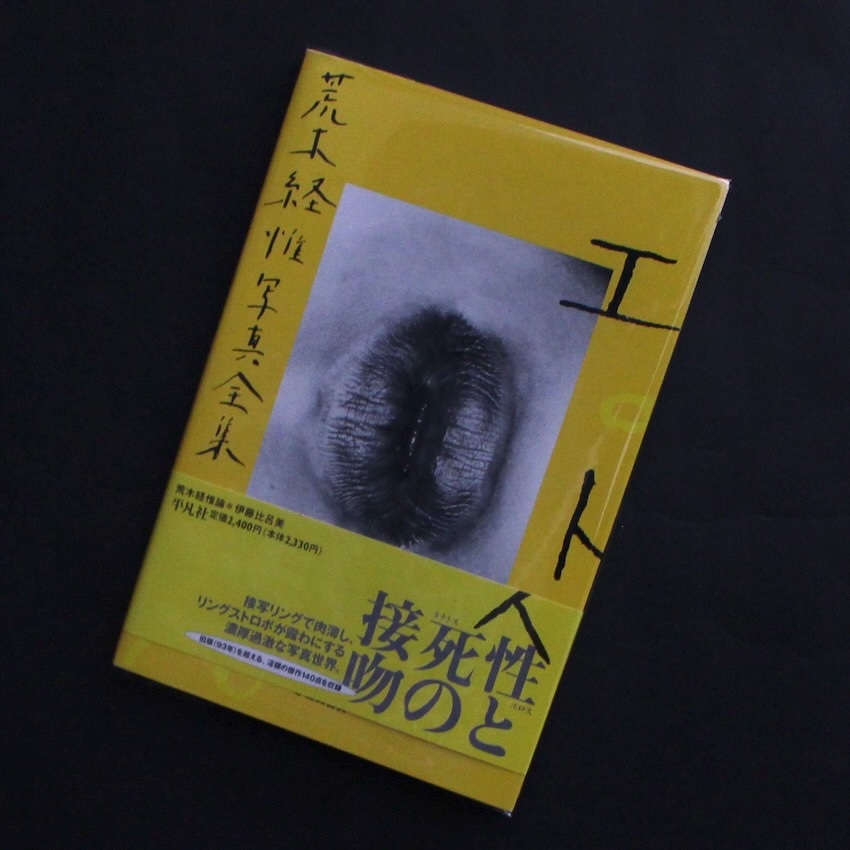 日本を代表する写真家・荒木経惟。本書『エロトス』は、平凡社から出版された全20巻からなる荒木経惟全集の16巻目にあたります。「エロス(性)とタナトス(死)ということをいつも感じている。エロスの反対がタナトスで、タナトスの逆がエロスっていうんじゃない。エロティックなことには、死が混ざってないとだめなんだよ。相反するものじゃない」(巻末「アラーキー『エロトス』を語る」より)。接写された身体のパーツや男女の交わり、首をくくった荒木の像、そして生物や花々。断片のみが提示された写真の数々には、その湿り気を帯びた生々しく、グロテスクな形状にエロスを感じ、一方で、ヒナ鳥の死体や腐敗した花々によるデカダンな雰囲気が同居しています。荒木のいうエロスとタナトスが濃密に絡み合う世界観は、ヌードや緊縛などのある種のセンチメンタルな様式美とは異なり、直接的に視覚を刺激し、毒々しくも強烈なインパクトが感じられます。帯付。