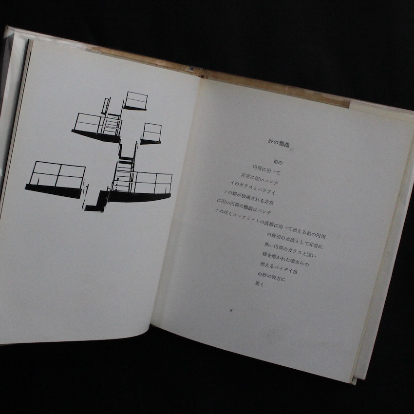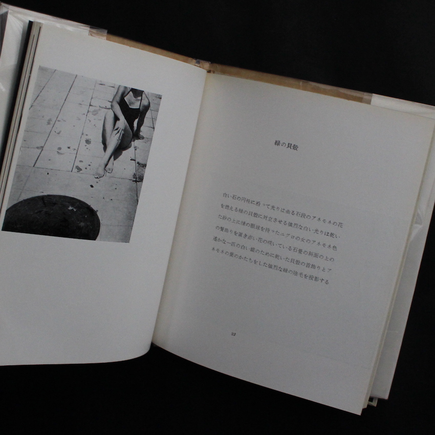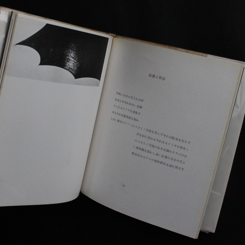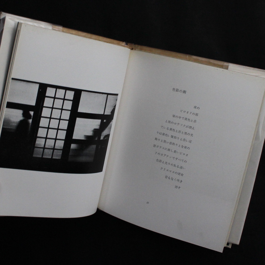 日本の詩人で写真家でもある鳥居良禅の作品集『詩集 石膏の菫 / Poeme Graphique』。前衛詩を代表する詩人・北園克衛(1902-1978)が先導した、総合的芸術運動で機関紙も発刊していた『VOU』クラブに参加していた鳥居良禅。北園と同様に、その活動は詩作に止まらず、写真を通した芸術表現にも行き渡り、舞踏家・土方巽の代表作「疱瘡譚」の撮影クレジットにも名を残しています。こちらは、戦後の50年代に刊行された詩集シリーズ「ピポー叢書」からの一冊で、ポエムとフォト・グラフィックからなるユニークな作品集。発行部数も250部と少数であることから、おそらくは、戦後日本を代表する写真史家であった金子隆一(1948-2021)によって、各誌で紹介がなされなければ、世の多くで知られることはなかったかもしれない貴重な写真詩集。北園らの流れを組む、前衛的・造形的かつ詩的なイメージとテキストが呼応する名著です。