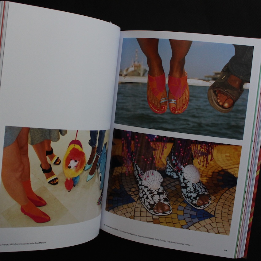 イギリスの写真家マーティン・パー(1952-2025)の作品集『Fashion Faux Parr(Signed)』。1970年代以降、イギリス社会を起点に、消費文化や階級意識、余暇の過ごし方といった日常の風景を、鮮烈な色彩と乾いたユーモアで捉えてきたパーは、ドキュメンタリー写真に社会批評の視点を持ち込んだ作家として確固たる地位を築いてきました。本作は、そうした彼の関心がファッションという領域に向けられた写真実践を編集・集成した一冊です。ランウェイや広告が示す理想像ではなく、街角やイベント会場、その周縁に現れる人々の装いに視線を向けることで、流行をなぞる欲望と個人的な嗜好がずれたまま共存する現実が浮かび上がります。写真は対象を嘲笑することなく、装うという行為がいかに社会的な規範や価値観と結びついているかを淡々と示し、見る側自身の判断や視線のあり方を問い返します。ドキュメンタリーと社会批評を横断してきたパーの方法が、ファッション写真の文脈を外側から読み替える試みとして結実した一冊です。写真家サイン入り。