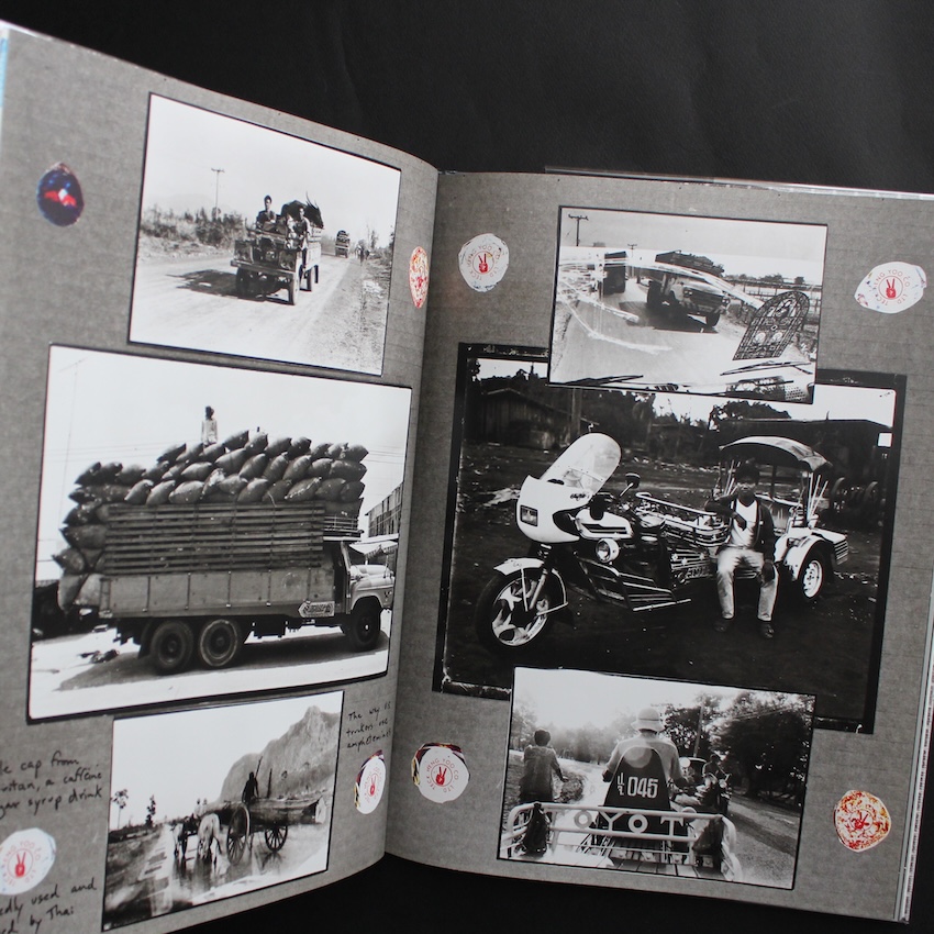 アメリカの写真家ビル・バーク(1943-)の作品集『I Want to Take Picture』。バークはケンタッキーを拠点に、アメリカ南部の共同体や、戦争を経験した土地の人々が生きる現実を、深い関係性の中から撮り続けてきた作家です。長年にわたり東南アジアを訪れ、戦争の爪痕が日常に刻まれた社会に向き合いながら、人間の尊厳や信仰の力に静かに寄り添う視線を貫いています。本作は1970〜80年代にカンボジアやタイで撮影された写真が中心で、初版は1987年にNexus Pressより刊行されました。写真に手書きの文字やスクラップを重ねた生々しい構成が大きな評価を集め、後に2007年Sに再版がなされ、印刷と製本の精度を高めながら当初の表現を継承しています。祝祭の熱気、祈りの静寂、そして暴力の記憶が同じ場所に息づく様を、外部の視線として認識しつつ、関わった人々への敬意を失わないまなざしで捉えた一冊です。
