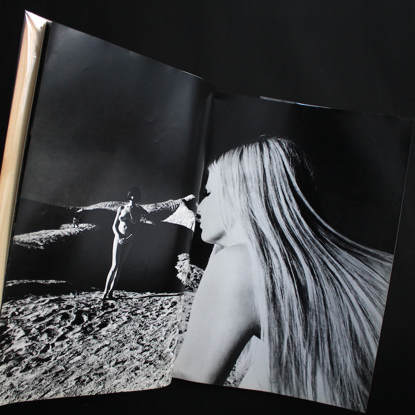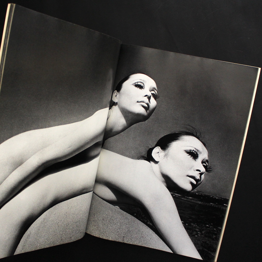 日本を代表する写真家のひとりである篠山紀信の写真集『Nude(Softcover)』。日本大学芸術学部写真学校では「写真の技術」を、夜間で通っていた東京綜合写真専門学校では「写真とは何か」を学んだという篠山は、在学中より名門・ライトパブリシティの写真部員で活躍、コマーシャルの世界で活躍し、60年代後半にフリーとなって以降は、当時トップモデルの一人であった松田和子や歌手・丸山明宏らをつぎつぎにハダカにし、「脱がせ魔・篠山」とまで言われ、マスコミで騒がれていました。以降現在までに至る活躍は周知の通りですが、本書はフリーに転身後、ヌードドキュメントや裸体の造形美を写し出す作品を創作して篠山のヌード作品を収録したタブロイド版の作品集。編集は山岸章二。装丁・構成は細谷巌。