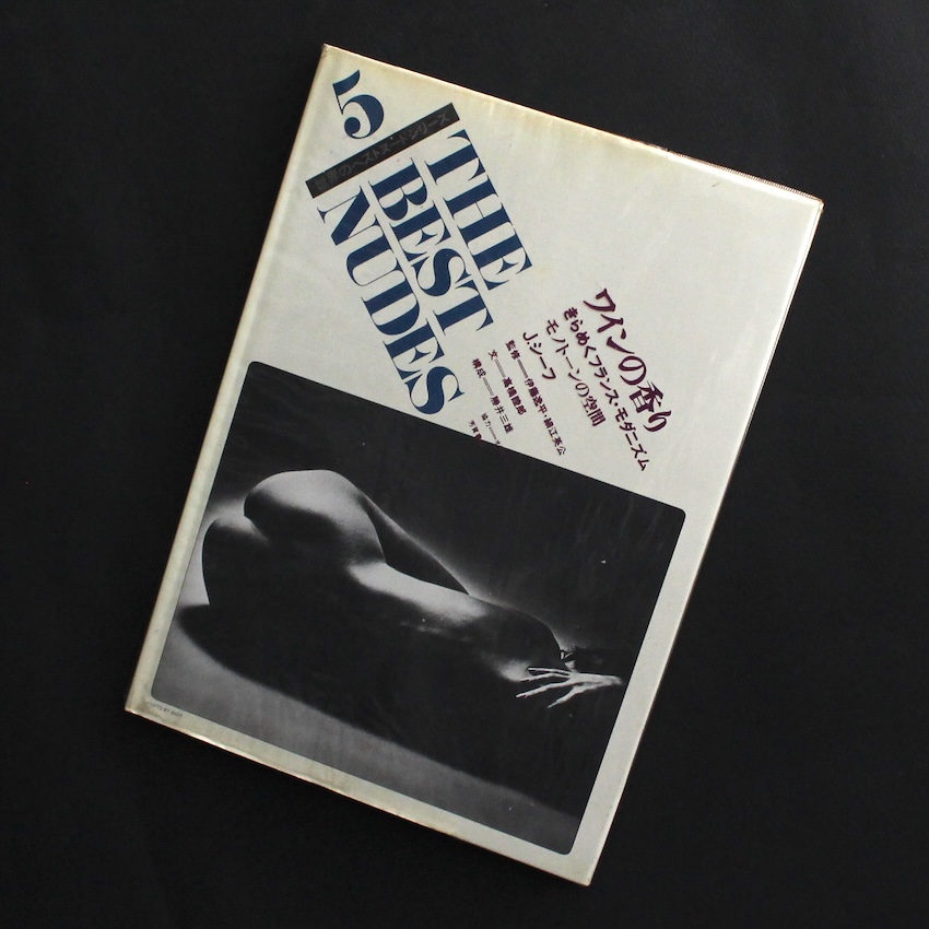 本書は、1980年前後に芳賀書店より刊行されていた「ヌード」のシリーズ作品集。全10号発行されており、東京写真専門学校などで教鞭を執り、数々のヌードに関する執筆でも知られる評論家・伊藤逸平と、戦後日本写真を代表するフォトグラファー・細江英公の2名が監修し、デザイナー・勝井三雄が構成を担う形態で、テキスト及びテーマを毎号変更して刊行されました。本第5号のテーマは「ワインの香り」で、テキストは詩人・高橋睦郎。一時期はマグナム・フォトにも所属し、ニエプス賞も受賞、後にファッション写真家とし大活躍し、日本でも何度も個展が開催されたジャンルー・シーフの作品のみで展開されており、他号は多くの写真家によるオムニバスであることを考えると、いかにシーフが特別な存在であったかも窺い知れます。