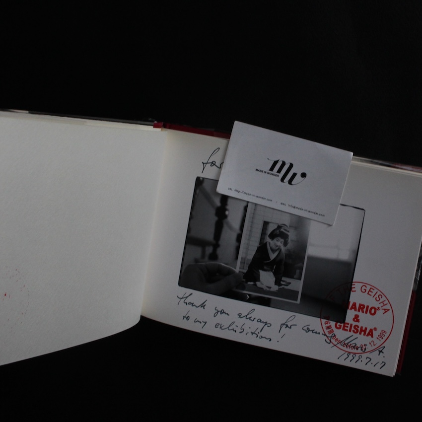 スイスに生まれ、現在は日本で活躍する写真家・アーティストである亜真里男(マリオ・A)の写真集『F The Geisha(Signed)』。本名は、マリオ・アンブロスィウス。ドイツの父、イタリア人の母、そして妻は日本人というマリオ・Aは、1982年に来日して以来、東京やベルリンを中心に精力的に活動を行い、『東京 / Tokyo in Bewegung』など、日本をモチーフにした数々の写真作品を発表。2000年以降はマリオ・Aとしての写真制作を封印して、日本人画家・亜真里男としての活動も本格的にスタート。社会風刺的な作品などを幻想的に表現した作品は多くの反響を呼んでいます。本書は、故郷ドイツでも日本的イメージとして度々耳にするという「Geisha」という言葉をモチーフに、マリオ・Aなりの視点で、新たな「日本」「Geisha」的なイメージを、日本的エロスを通して描写しようと試みた意欲作。芥川賞作家・多和田葉子によるテキスト。謹呈署名入り。