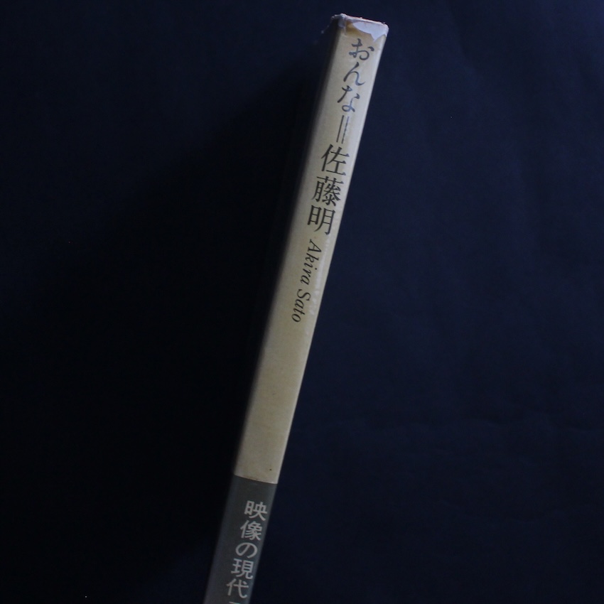日本の写真家・佐藤明の写真集『おんな / Woman』。1960年代〜70年代にかけて前衛的でコンセプチュアルな写真を創作した戦後日本を代表する写真家佐藤明。東京麻布・毛布問屋の生家に生まれ、幼少時から異国が身近にある環境で育ち、横浜国立大学時代は、海外雑誌を読みふけっていたというサラブレッド。1959年には奈良原一高、東松照明らとともにVIVOを結成し、1966年には写真批評家協会作家賞を受賞しています。著名な評論家吉村伸哉に「それにしても、彼の写真ほど言葉から遠いものはない」と言わしめ、山岸章二にも佐藤の作品のタイトルや解説に悩まされたと言わしめたほど、創造性に富んだアーティストでした。本書は、70年代初頭に刊行された映像の現代シリーズの第7巻。代表作である江波杏子モデルの「サイクロピアン」「おんな」「冷たいサンセット」のセクションで構成されています。華奢な繊細さや高踏的な華麗さが内包された素晴らしい一冊。帯付。(The Japanese Photobook 1912–1990 収録)