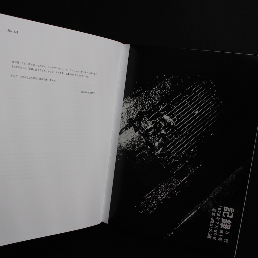 日本の写真家・森山大道(1938-)の作品集『記録 / Record(Akio Nagasawa Version, Signed)』。森山は1960年代よりアレ・ブレ・ボケのスタイルで都市の断片を切り取り、粗い粒子や強いコントラストを通して写真表現の既成概念を覆してきた日本を代表する写真家です。常にストリートに身を置き、日常の中に潜む偶然や即興性を鮮烈に写し取る姿勢は、国内外で高く評価されています。本書は、森山が自ら編集・刊行してきた写真誌『記録(Record)』を集成した1-30号のダイジェスト版。街角の雑踏や人々の視線、看板や犬といった断片的なモチーフが織りなす写真群は、都市の記憶を日誌のように重ね合わせ、時間と空間の堆積を示すものとなっています。モノクロ主体の構成に加え、森山自身のテキストや編集者による序文も収められ、50年にわたる作家の活動を総覧する一冊として、写真史における記録と表現の可能性を改めて提示する重要な作品集です。日本語版。