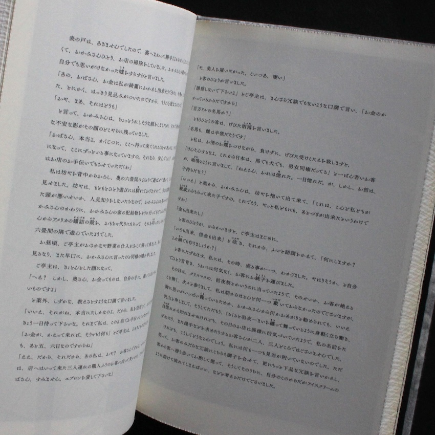 日本を代表する写真家・森山大道と、造本家・町口覚がマッチアンドカンパニーのMMMレーベルで刊行した『Dazai』。MMMは森山大道、本尾久子、町口覚のイニシャルを冠したシリーズであり、写真・編集・デザインの三者が一体となった創造的な出版プロジェクトの五冊目として2014年に世に出ました。森山は戦後都市の濁流を独自のモノクロームで切り取り続けてきた表現者であり、本作では70年代から現代までの作品から太宰治の精神と共鳴するイメージを抽出しています。タイトルの『DAZAI』には、太宰治の短編『ヴィヨンの妻』が収録され、写真と文学が隣り合いながら、孤独や際どい精神の震えを呼び起こします。写真集は単なる作品集ではなく、森山自身が感応してきた太宰的な感覚をモノクロの断片で再構成したものとして位置づけられ、町口覚による装丁もまた、紙や造本の質感を通じて本の物質性自体が視覚体験と響き合うよう設計されています。写真と文学の境界を揺らしながら、都市の雑多さと存在の内奥へと誘う一冊です。日本語版。350部限定。