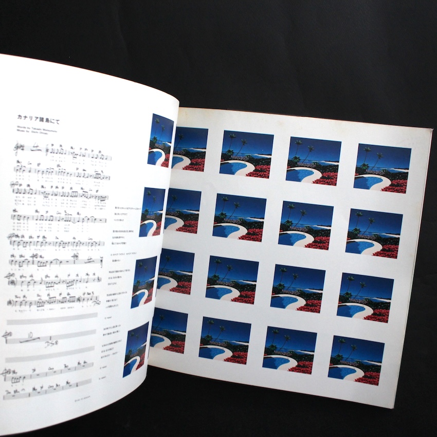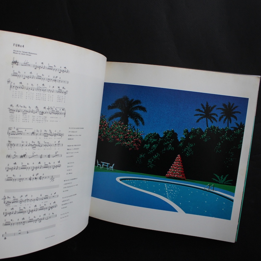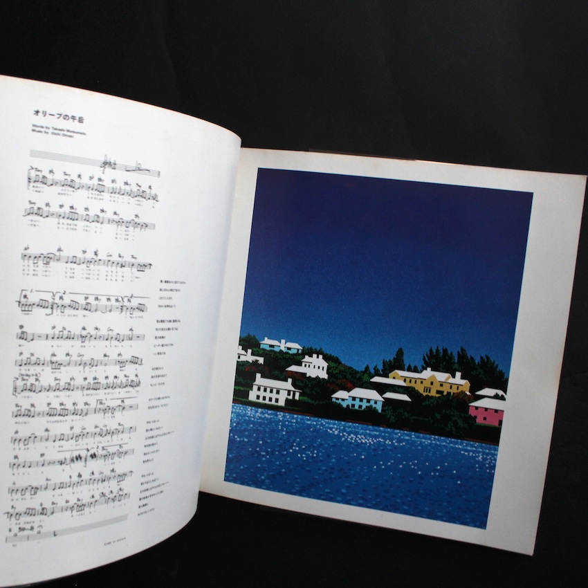 日本の音楽家・大瀧詠一のサウンドと、イラストレーター・永井博のヴィジュアルが結晶した『Niagara Song Book』は、1982年に刊行された初版本です。ナイアガラ・レーベルの世界観を、音だけでなく視覚表現と編集意識を含めて提示する本書は、大滝の音楽を「再演可能な構造」として捉え直す試みであると同時に、永井博のクリーンで開放的なイメージがその空気感を決定づけています。アメリカン・ポップスへの深い理解を下敷きにしながら、日本語のリズムやメロディを精緻に構築してきた大滝の楽曲は、永井の描く都市や海辺の風景と結びつくことで、80年代初頭の理想化されたポップ・イメージとして定着しました。本書は単なる楽譜集ではなく、サウンドとイラストの協働によって成立したナイアガラ美学を紙上に定着させた記録であり、後年に至るまで続く両者の関係性を象徴的に示す一冊です。2025年にリミックス・バージョンも刊行されました。