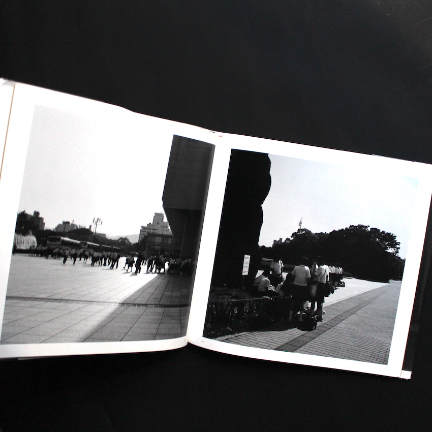 日本の女性写真家・笹岡啓子(1978-)の作品集『Park City』。広島生まれの笹岡は、2000年代初頭から故郷を「公園都市」としてとらえ、広島平和記念公園とその周辺を長期的に撮影してきた作家です。歴史の重さを直接語るのではなく、街路樹や芝生、川辺の歩道を行き交う人びとの姿に、戦後を生きる都市の日常と、そこに沈殿した記憶の層を静かに重ね合わせる視線が特徴です。『Park City』は、21世紀の広島の昼と夜を写した写真をまとめた写真集で、がらんとした公園や橋のたもとに、ゆっくりと流れる時間が擦り傷のように刻まれています。スローシャッターや反転像によって輪郭を失った人影は、現在を生きる身体でありながら、どこか亡霊のように画面を漂い、過去と現在が交錯する感覚を呼び起こします。観光写真とも記録写真とも異なる距離から、「写らない広島」を見つめ続けるまなざしが結晶した一冊となっています。帯欠。