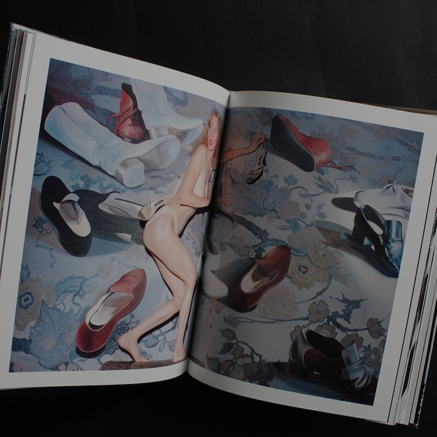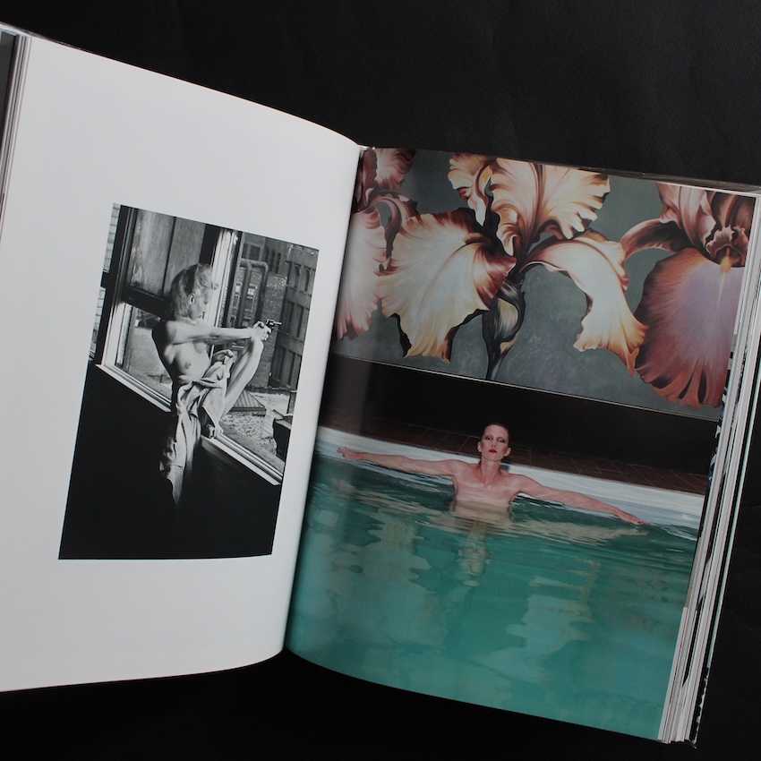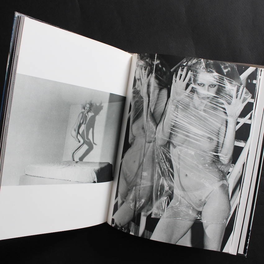 日本の写真家・新正卓の写真集『American Parody』。1936年東京生まれ。60年代にグラフィック・デザイナーとして活動していた新正は、自身のトレーニングとしてイメージの撮影を個人的に行っていました。その中の1枚がデザイナーとして付き合いのあった写真編集者・山岸章二の目に留まり、1969年に『カメラ毎日』に掲載され、その後写真家へと転向。ファッションや広告の分野で活躍しながら、ヌード写真を中心とした写真集を手掛けています。本書は『Erika』『Patricia』に続く、新正のサードブックで、ニューヨークを舞台にアニータをモデルとして撮影した図版で構成された作品集。スーパーマン、星条旗などを用いたパロディ風な要素に、新正らしいグラフィックのデザイン的要素も織り交ぜられ、カラー及びモノクログラビアも併用した美しい写真集となっています。