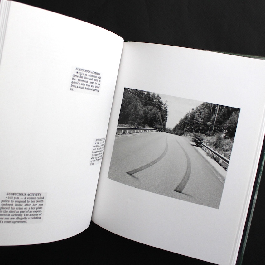 アメリカの写真家Aaron Schumanの作品集『SLANT』。シューマンは、写真と言葉、編集構造の関係性に強い関心を持ち、イメージそのものよりも、それらが並置されることで生まれる認識のずれや違和感を探ってきた作家です。本作では、マサチューセッツ州アマースト周辺の地方紙に掲載された「Police Reports」欄の短文と、同地域で撮影された写真を組み合わせ、テキストとイメージの間に意図的な不協和を生み出しています。当初は小さな町への親しみを帯びた視点から始まった試みは、2016年以降のアメリカ社会に広がる不安や疑念を背景に、次第に不穏な響きを帯びていきます。タイトルは、同地にゆかりのある詩人エミリー・ディキンソンが用いた「slant rhyme(斜め韻)」の概念に由来し、写真と言葉が完全には重ならない関係性そのものを示唆します。本書は、日常の表層の下に潜む歪みや緊張を、説明ではなく構造によって静かに浮かび上がらせる一冊です。