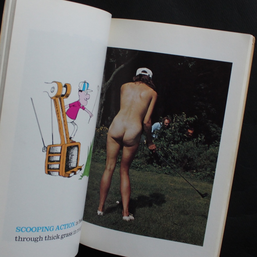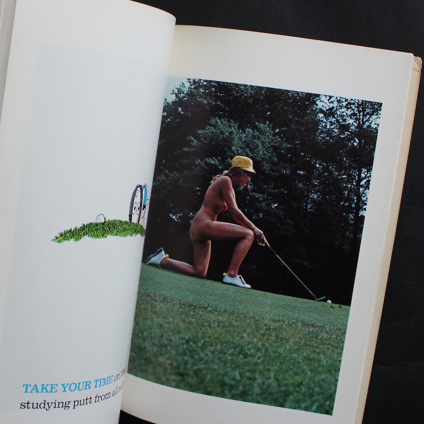 本書は、70年代にアメリカで刊行された作品集で、70~80年代に日本でもよく出版されていた「スポーツ」をモチーフにしたヌード写真集のような一冊。「ゴルフ」の楽しみ方と題して、ウエアからスイング、さらにはコースでの注意点などについて、女性に指南される一面がユニークに描写されています。ちなみに同シリーズは「Basic Golf」「Basic Tennis」「Basic Skiing」なども出ている模様。見開きで収録されているイラストレーションも可愛いらしく、80年代に時代を席巻した雑誌『写真時代』の名編集者・末井昭のエディトリアルを想起させます。