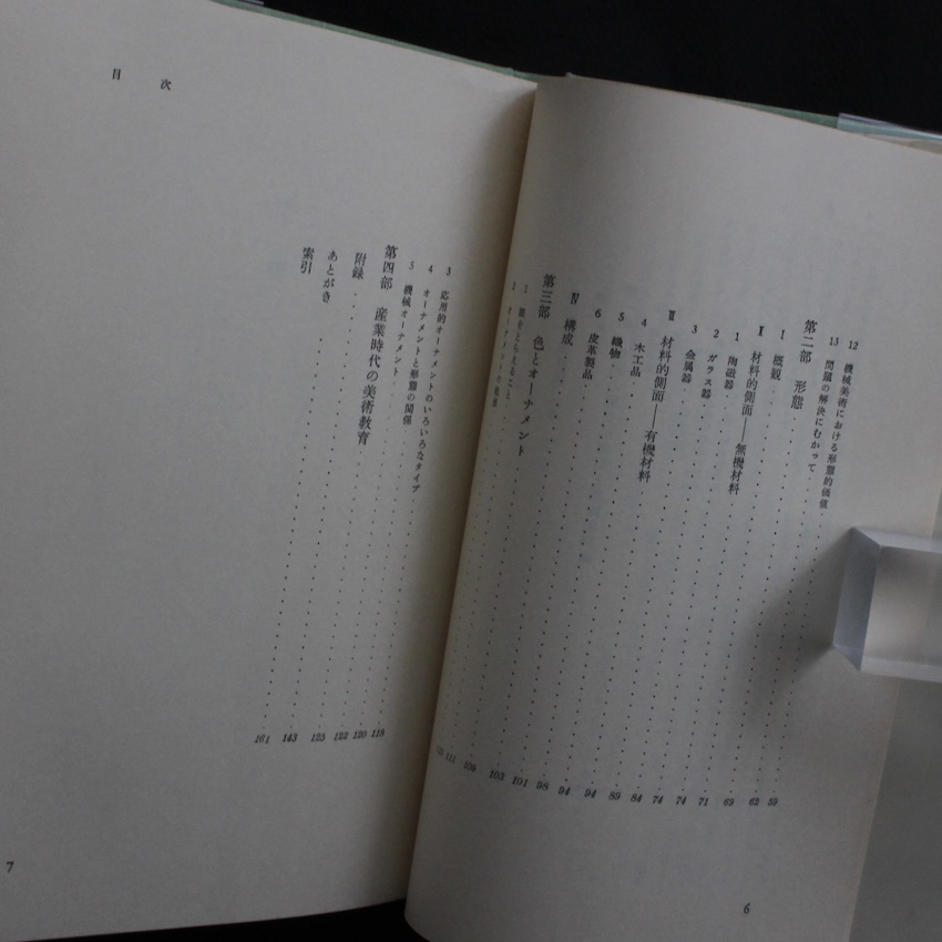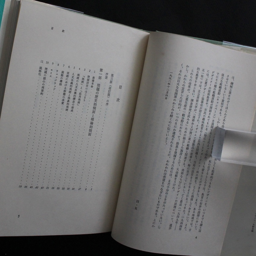 イギリスの美術批評家ハーバート・リード(1893–1968)の著作『インダストリアル・デザイン』。詩人・批評家として近代美術とデザイン思想を横断したリードは、アーツ&クラフツ運動からバウハウスへと連なる近代デザインの理念を理論化した重要人物として知られます。本書は1930年代に著された代表的デザイン論をもとに、日本の工業デザイン黎明期に翻訳紹介された一冊で、機械生産と美術の関係、機能と形態、素材や装飾、教育に至るまで、産業社会における「美」のあり方を体系的に論じています。訳を手がけた勝見勝は、戦後日本におけるデザイン評論・編集活動を牽引した存在であり、その関与自体が当時のデザイン文化の導入史を物語ります。高度成長期直前の日本において近代デザイン思想を伝えた資料として、現在も読み継がれる基礎文献です。初版は1957年で、こちらは78年刊行・第9刷。