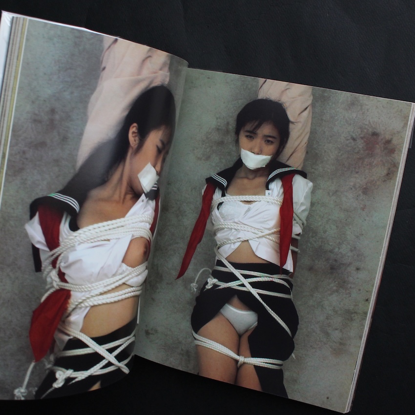 日本の写真家・五味彬の作品集『緊縛寫眞』。1953年東京都生まれ、日本大学芸術学部写真学科卒業後、フランスに渡り、数年間修行した後83年に帰国。その後は、『流行通信』や『ELLE JAPON』などのファッション誌で活躍し、90年代以降は、デジタルメディアを活用した革新的な表現で注目を集め、代表作には、日本人女性100人の身体的特徴を記録した写真集『YELLOWS』や、アメリカ各都市で女性たちを撮影し、肌の色や体型、文化的背景の違いを浮き彫りにした作品群『AMERICANS』などがあり、CD-ROM形式でも発売されました。近年は、生成AIを活用した作品制作にも取り組んでおり、デジタル技術と写真表現の融合を追求し続けているフォトグラファーです。こちらは、90年代初頭に刊行されたカラーの緊縛写真で構成された異色作です。