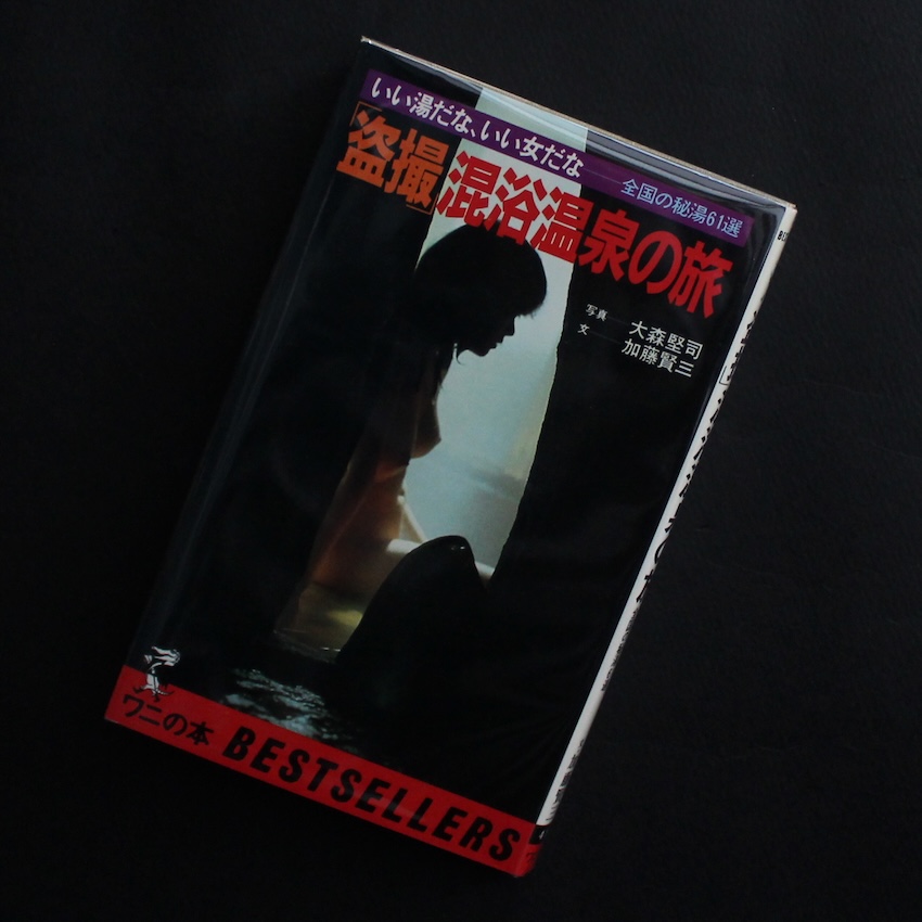 日本の写真家・大森堅司の写真集『「盗撮」混浴温泉の旅』。1982年にベストセラーズより刊行された本書は、全国各地の混浴温泉を巡り、その場の空気や人物像を捉えたヴィジュアル写真集です。大森は温泉や旅、風俗文化などを主題にした写真・ビジュアル本を手がけてきた作家であり、本書もまた高度成長期以後の余暇文化が広がる時代背景のなかで生まれた一冊といえます。観光地としての温泉ではなく、そこに集う人々の佇まいを通して、昭和末期の日本社会における開放性や身体観を映し出し、記録と娯楽のあわいに位置する写真表現のあり方を示しています。尚、翌83年にはA4サイズの『混浴温泉ひとり旅』も刊行されていますが、こちらはその前年に出版された単行本サイズの版で、ページ数もより充実したものになります。