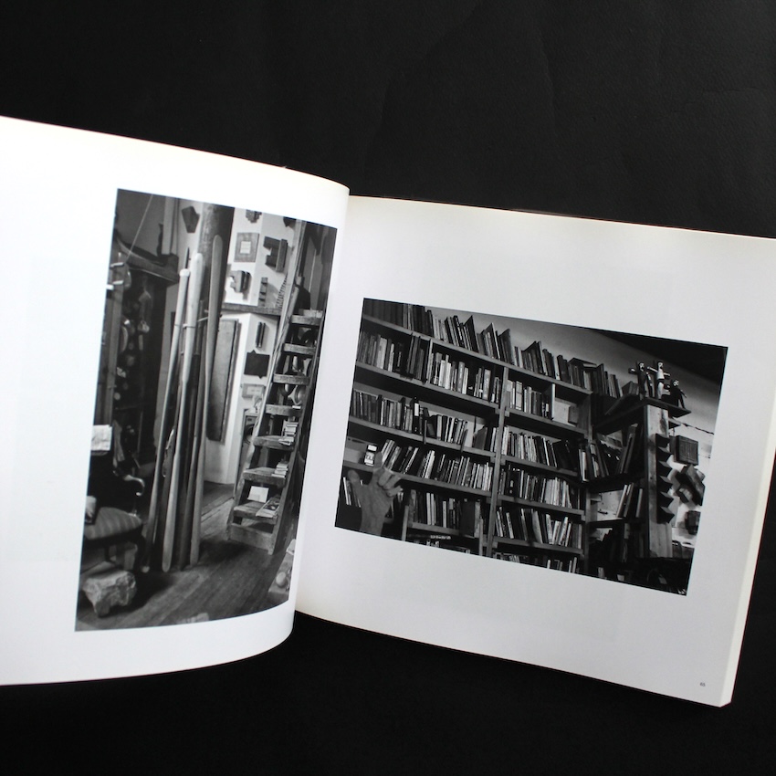 アメリカの彫刻家リチャード・ノナス(1936–2021)による作品集『Fieldwork』。民族学者として北極圏や辺境の共同体でフィールドワークを行った経験を持つノナスは、1970年代以降、物と空間の関係を探る彫刻作品で知られ、本書では自身のニューヨークのスタジオを対象に約150点のモノクロ写真を撮影しています。完成された作品だけでなく、制作途中の断片や素材、道具、日常的なオブジェが混在する空間は、単なる作業場というよりも、思考や行為の痕跡が堆積した場として立ち現れます。洞窟のように密度の高いこの内部空間は、彫刻的な配置や関係性そのものが主題となり、ノナスの実践に通底する「場」の感覚を強く示唆します。観察と配置への意識という民族学的視点と、彫刻的思考が交差する地点を可視化した一冊です。